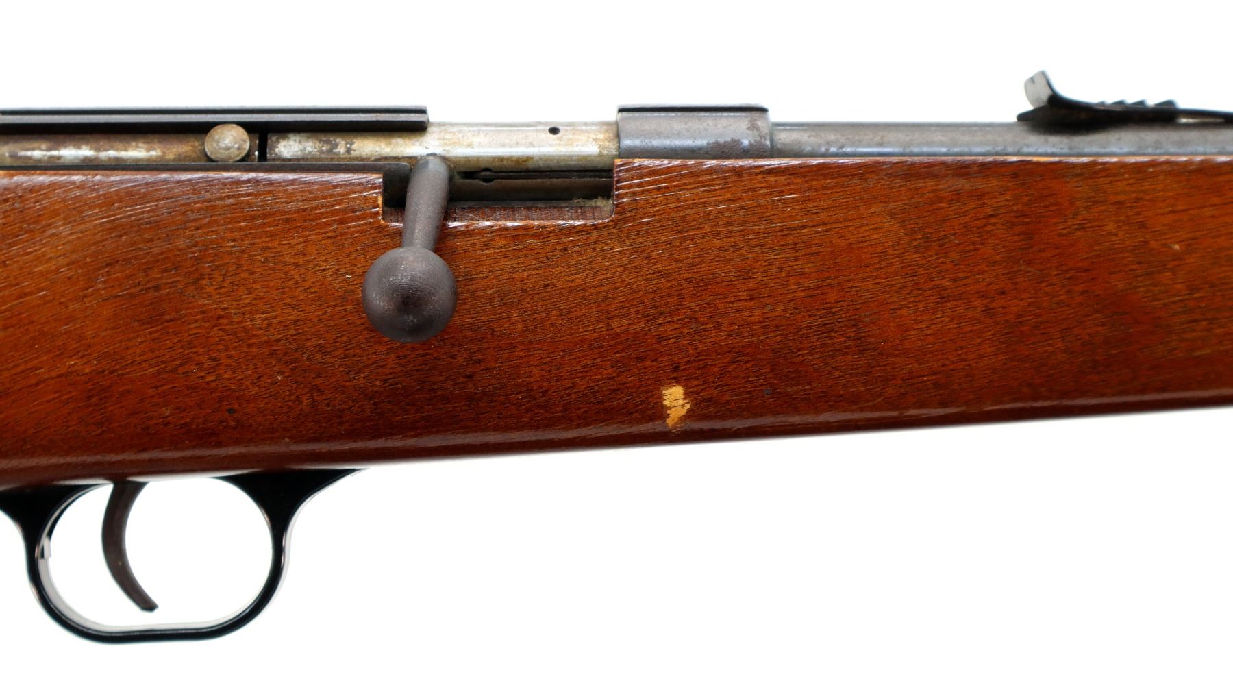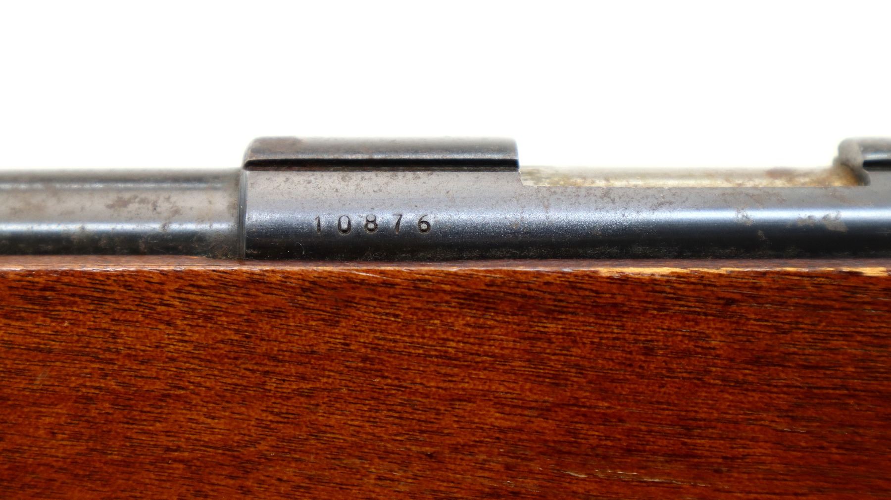 Wear: Metal finish turning brown with light rust speckles overall, scratches, handling marks and wear. Stock shows marks, scratches and wear.