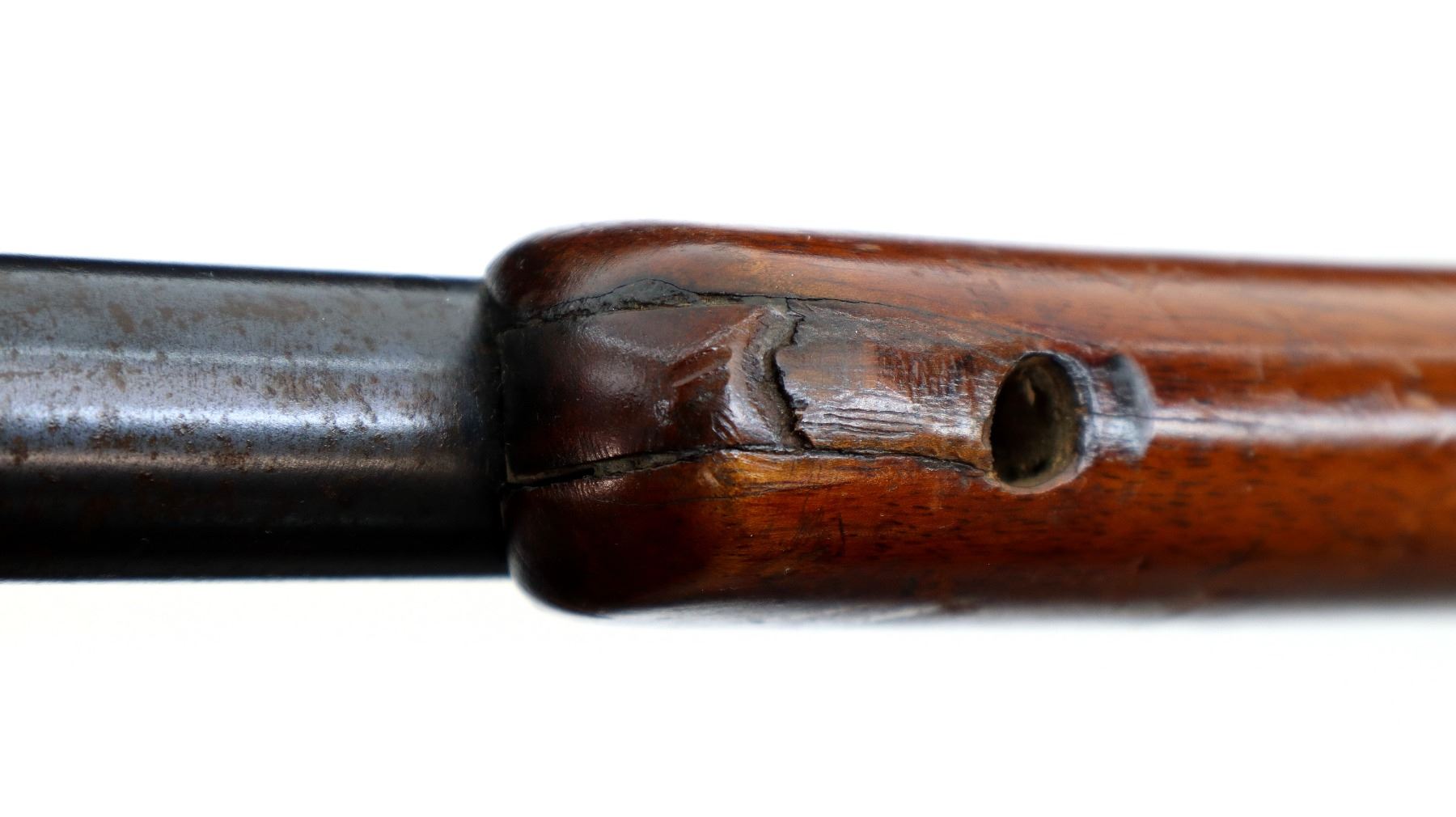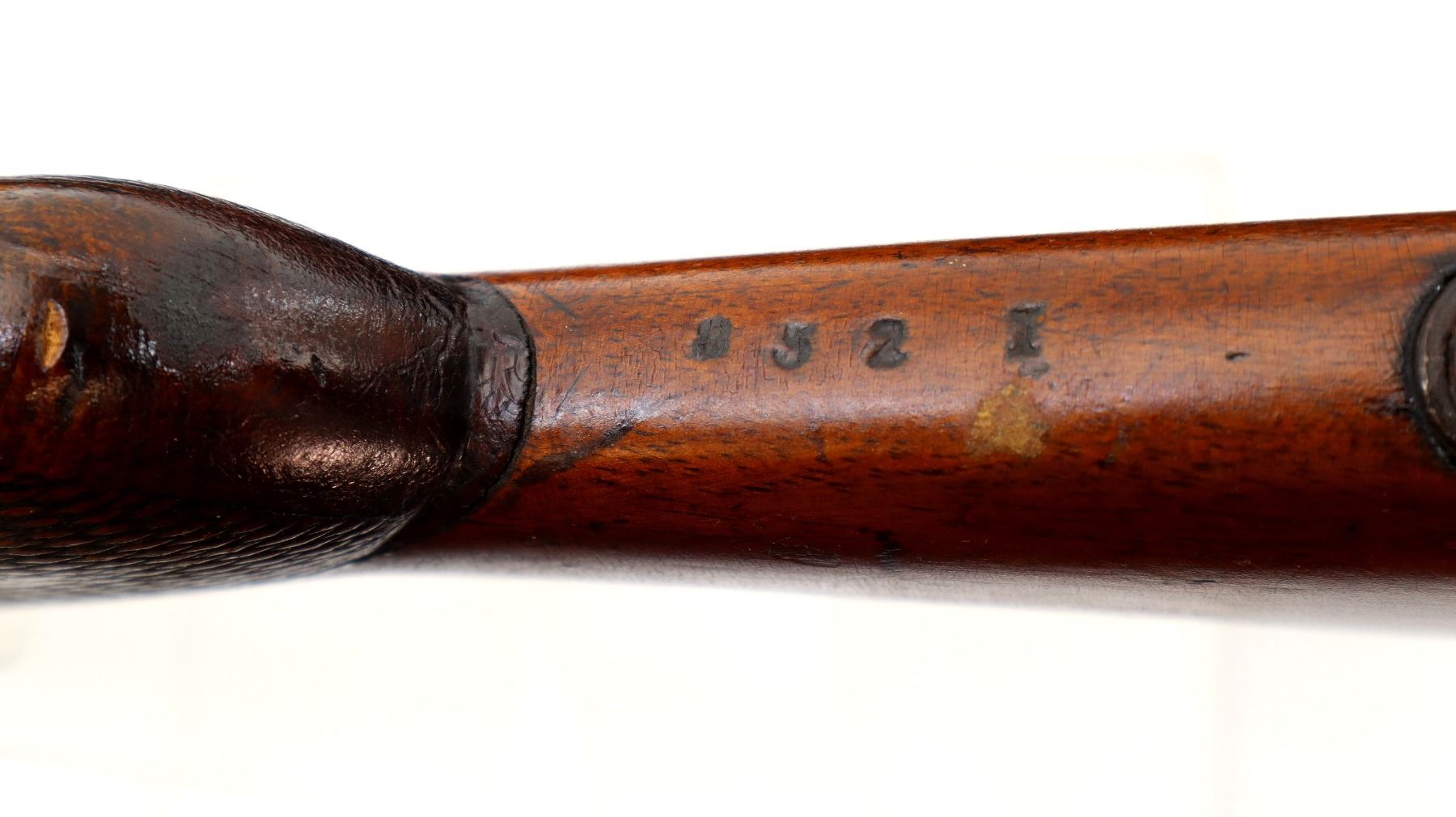 Wear: Metal finish shows some light rust speckles, scratches, handling marks and wear. Stock shows some marks, scratches and wear.