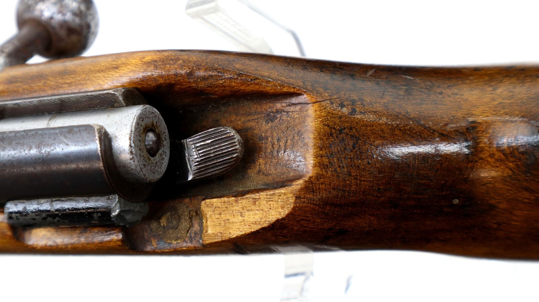 Wear: Metal finish turning brown with pitting, rust, scratches, handling marks and wear. Stock shows marks, scratches and wear.