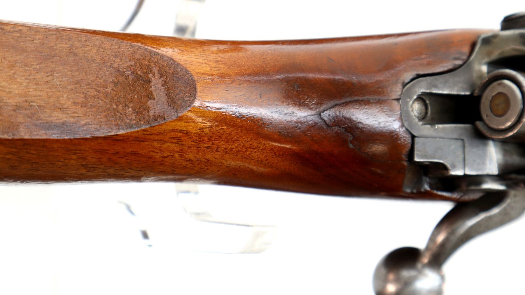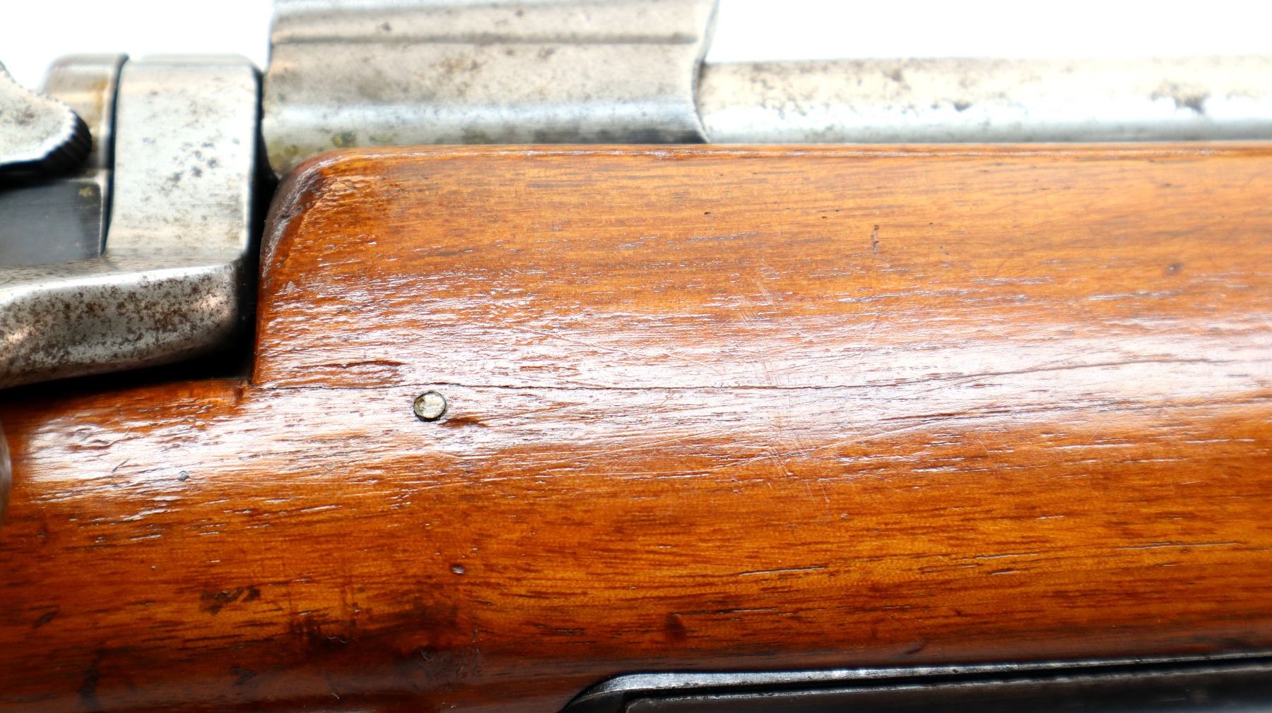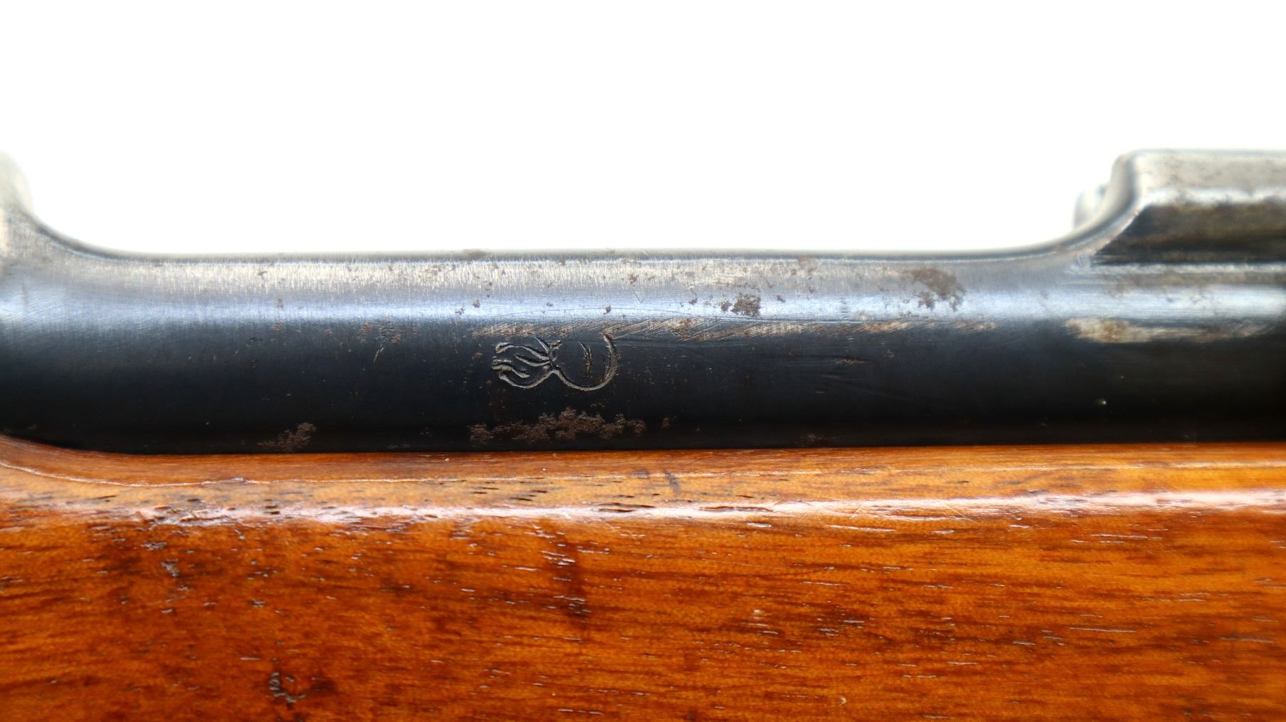 Wear: Metal finish shows some pitting, rust speckles, scratches, handling marks and wear. Stocks show marks, scratches and wear.