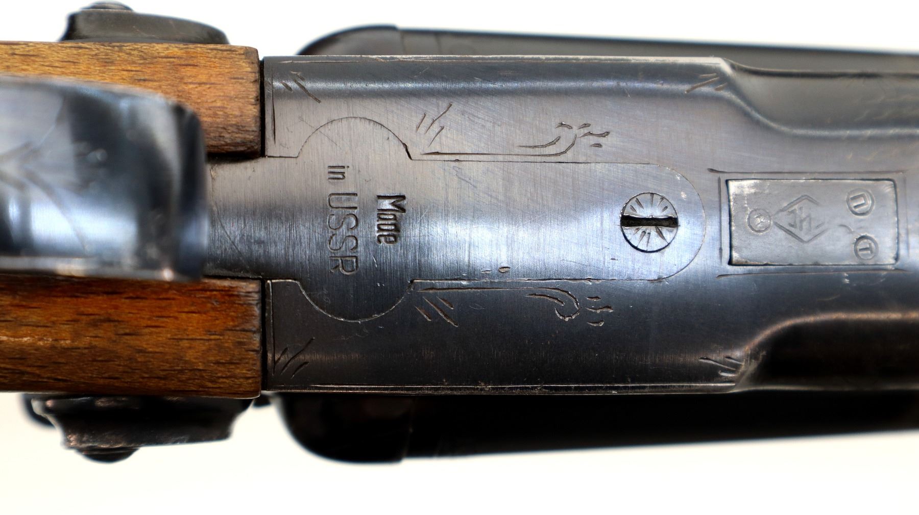 Wear: Metal finish shows a few light rust speckles, scratches, handling marks and wear. Stocks show some marks, scratches and wear.