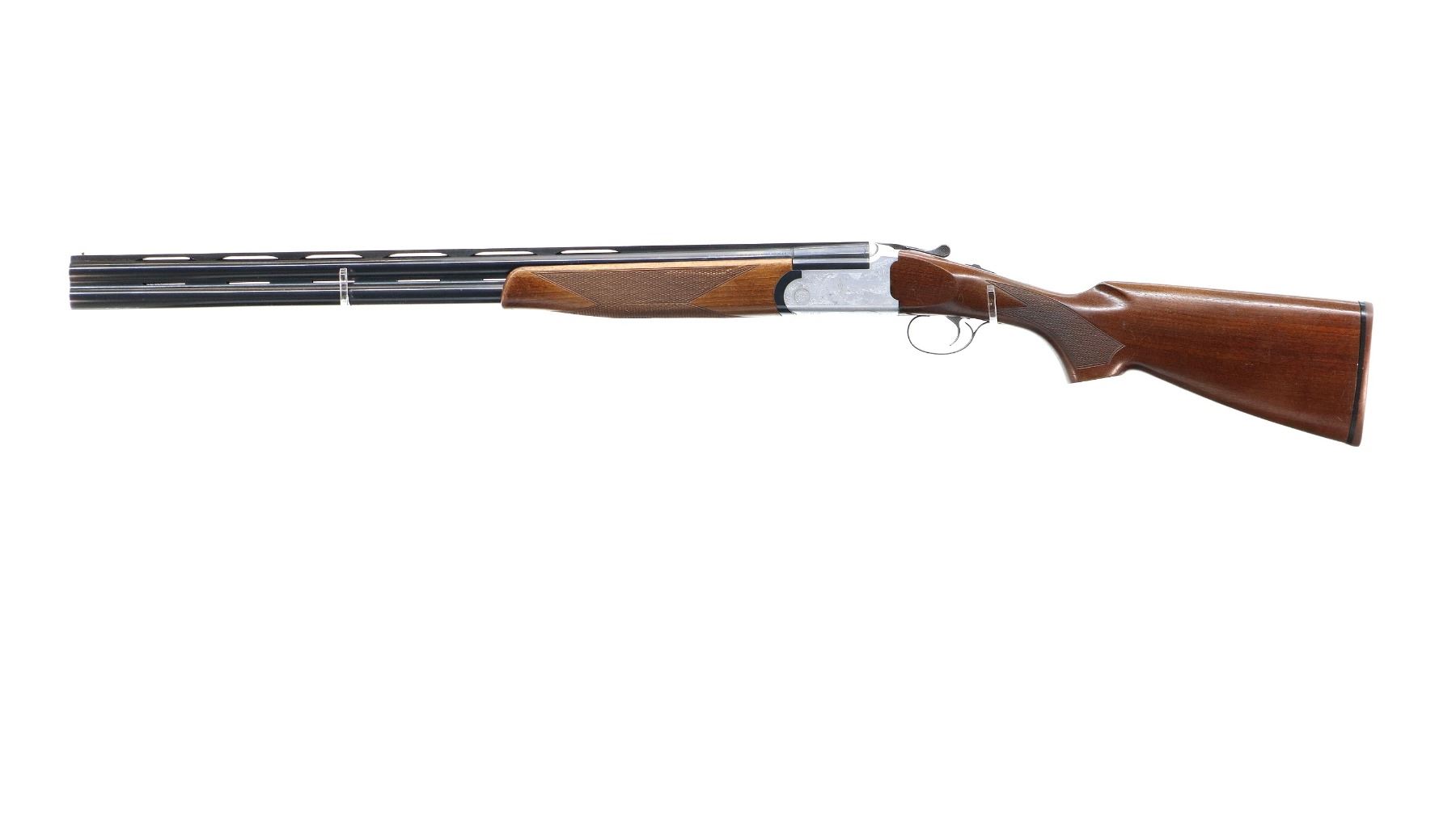 Main Description: Brass bead, blued vent rib barrels, silver engraved receiver, manual selective safety, action does not function requires adjustment parts or repair. Ejectors, single silver trigger. Two piece wood stocks, checkered forearm and pistol grip, brown rubber recoil pad which is loose