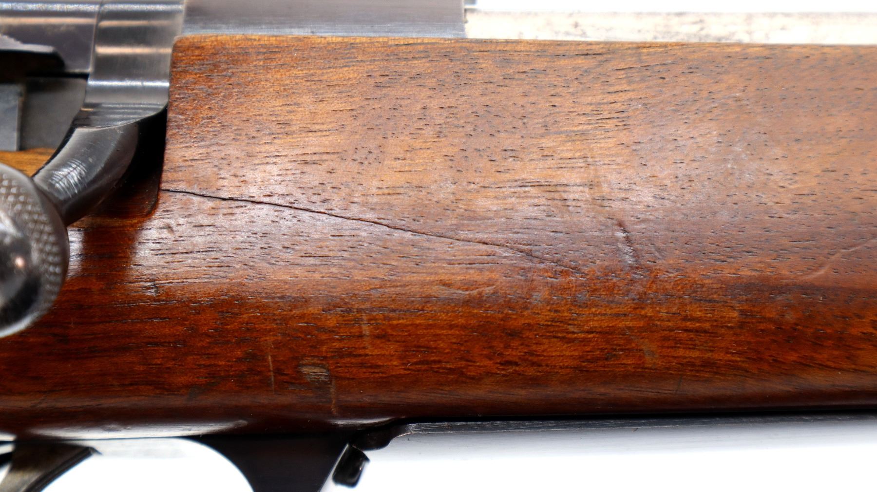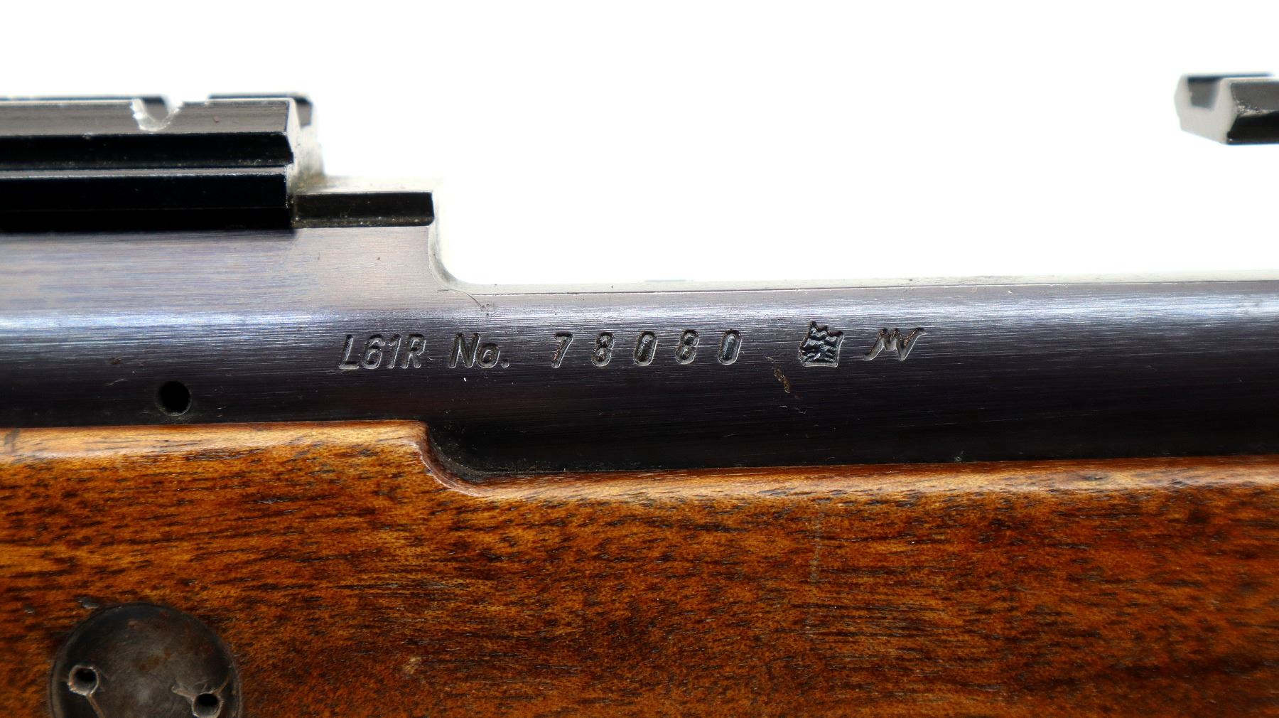 Wear: Metal finish shows some light rust speckles, scratches, handling marks and wear. Stock shows marks, scratches and wear.