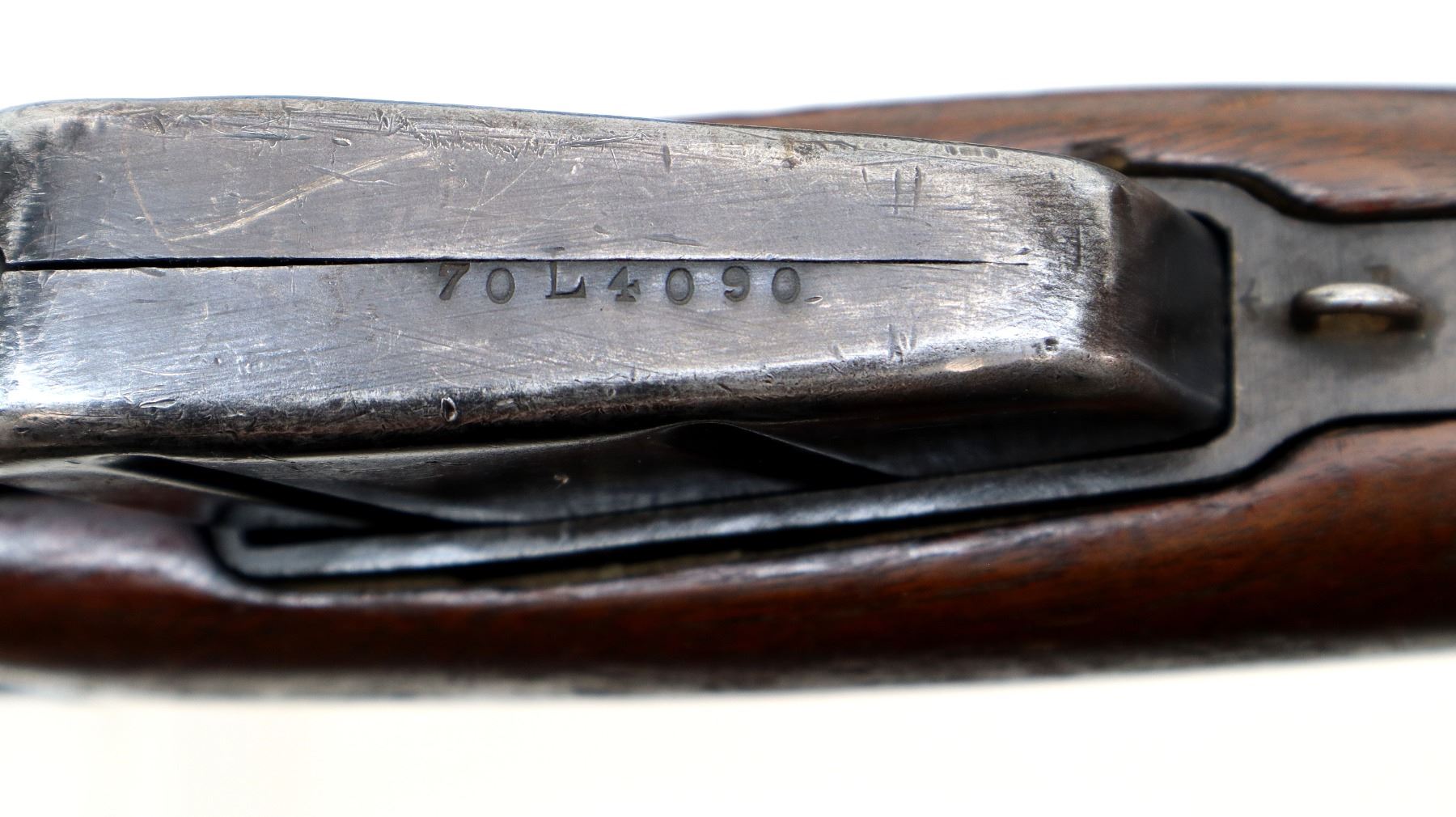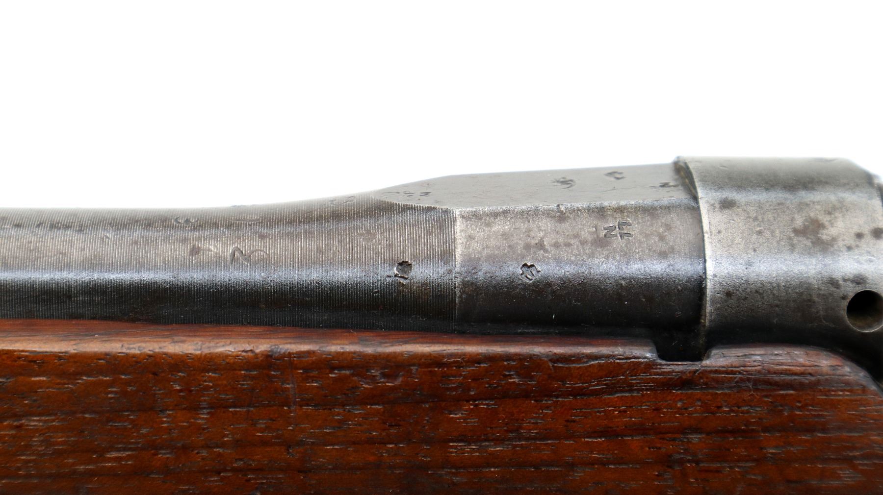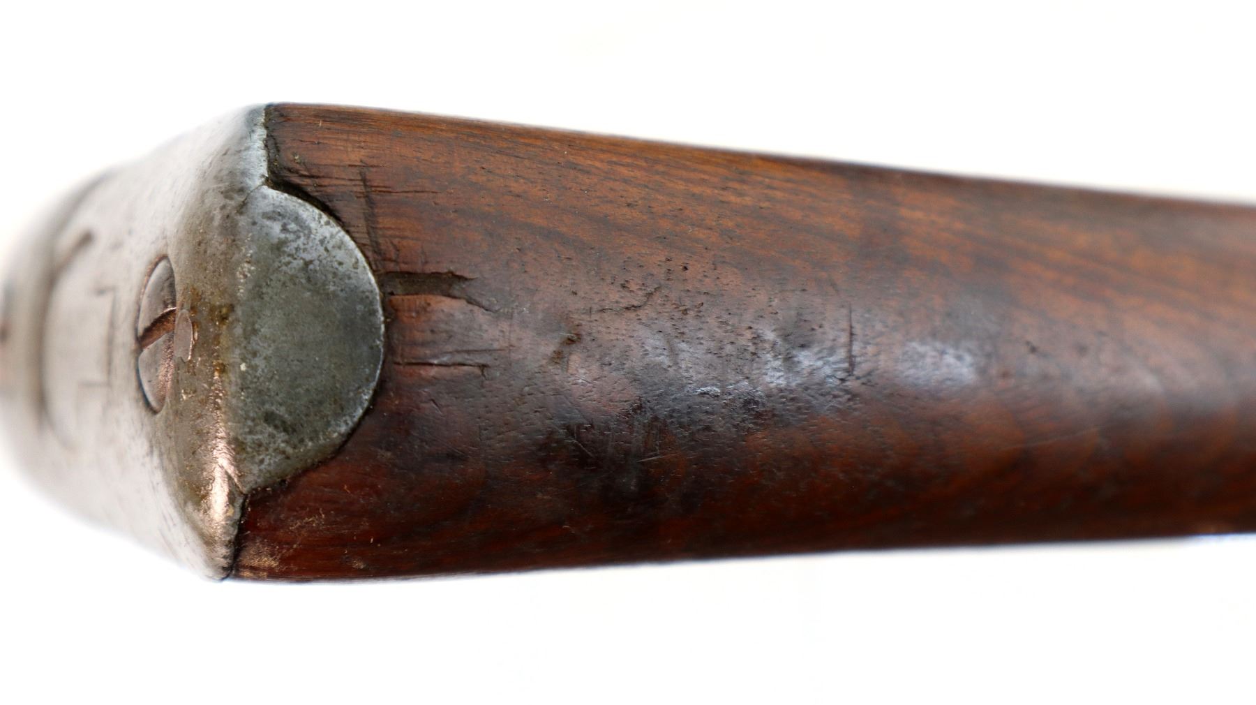 Wear: Metal finish turning silver grey with pitting, light rust spots, scratches, handling marks and wear. Stocks show marks, scratches and wear.