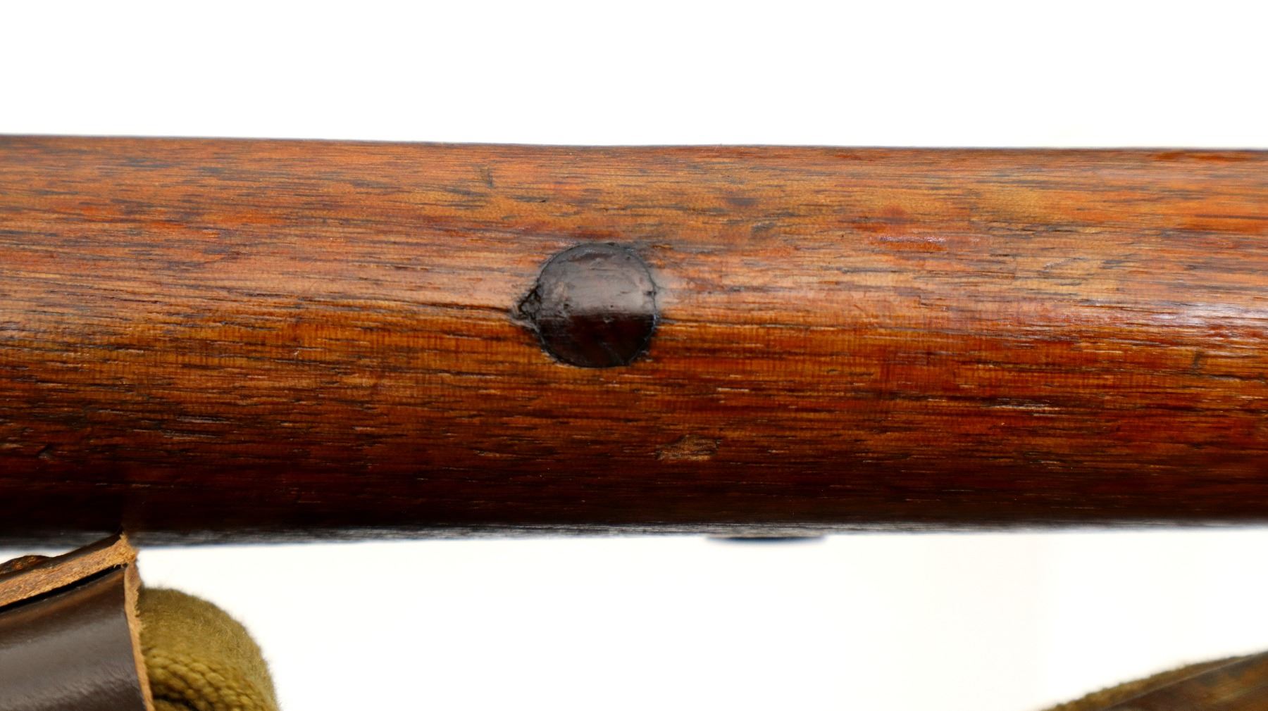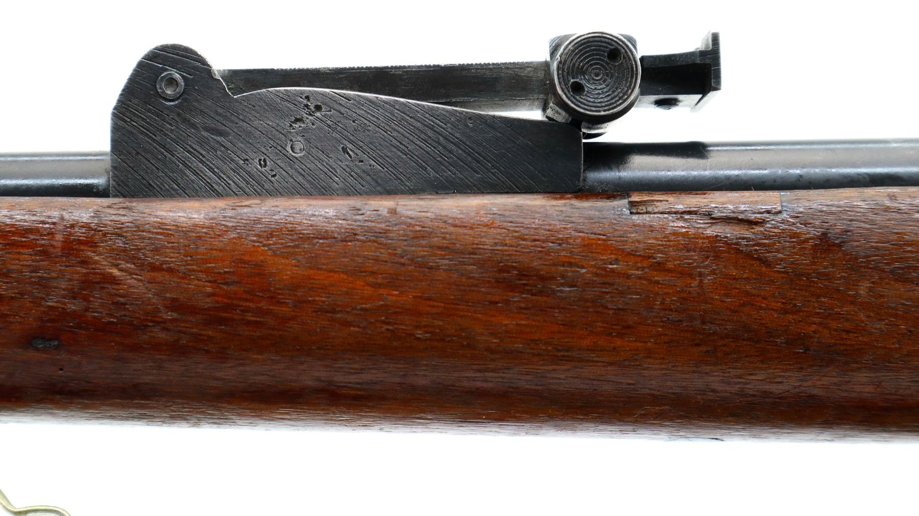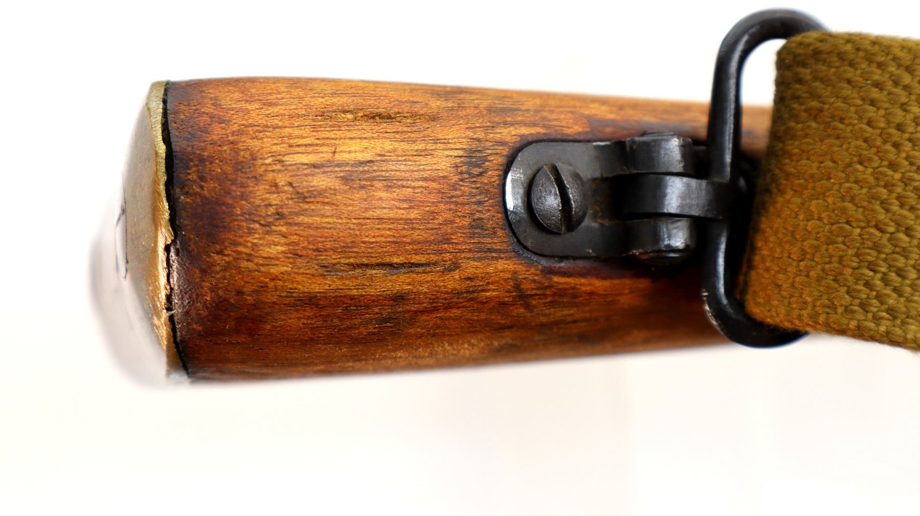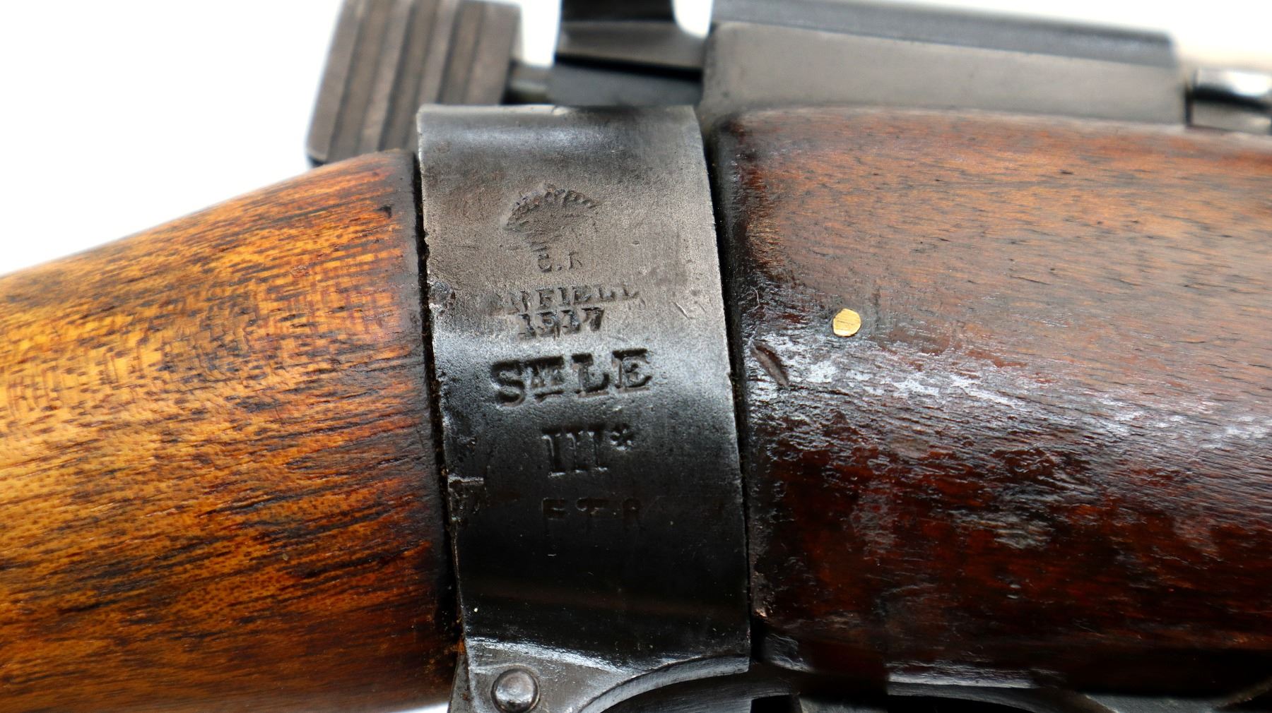 Main Description: Manufactured by Enfield 1917, bolt matches. Blade front sight with ramp, adjustable u notched rear sight, blued finish. Two piece sporterized wood stocks, pistol grip, smooth brass butt plate with trap, sling swivels with canvas Russian SKS sling.