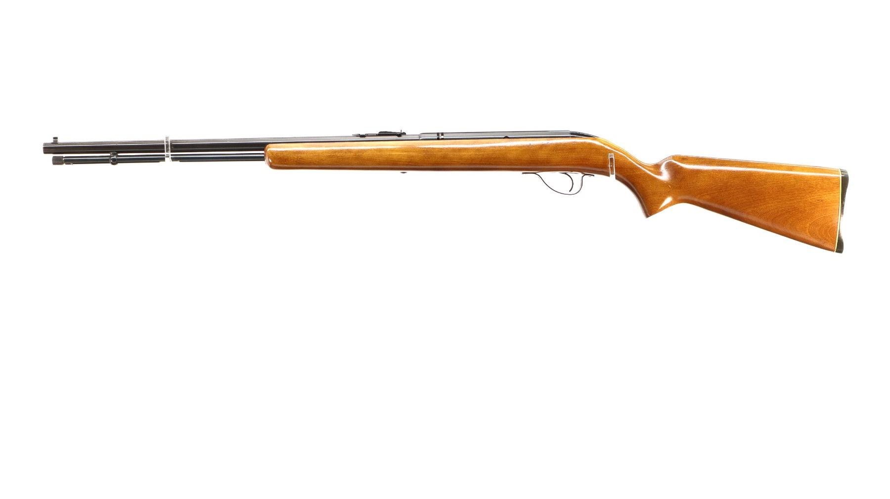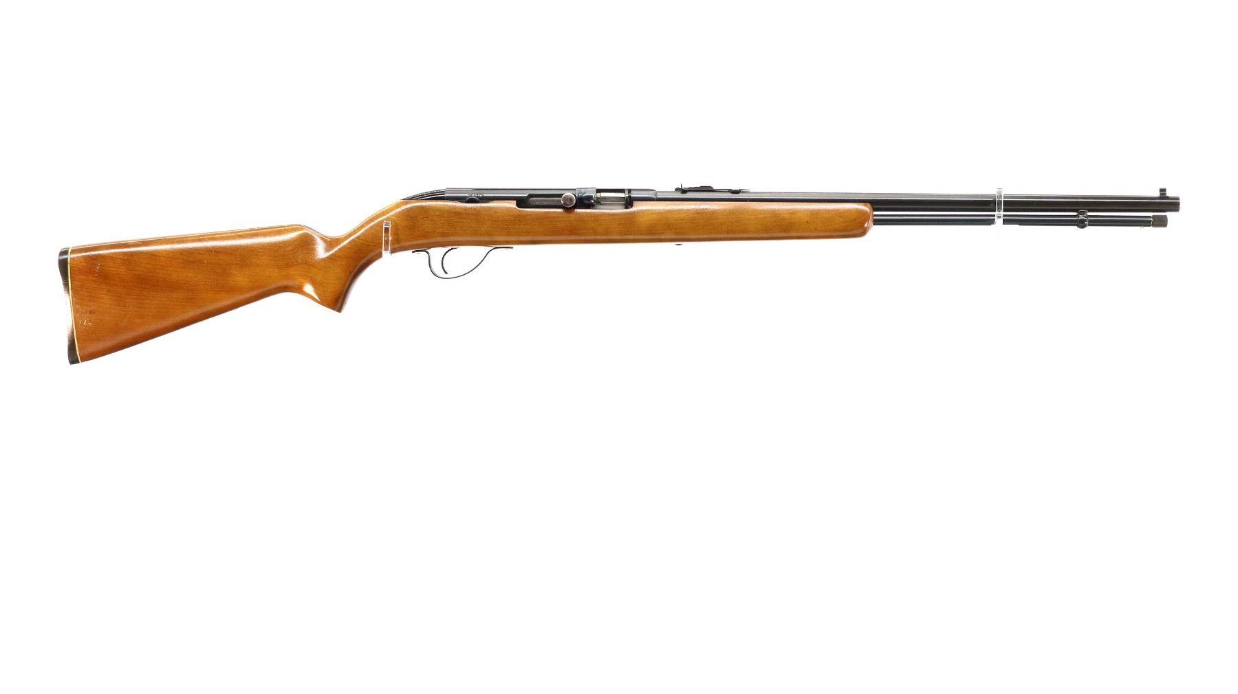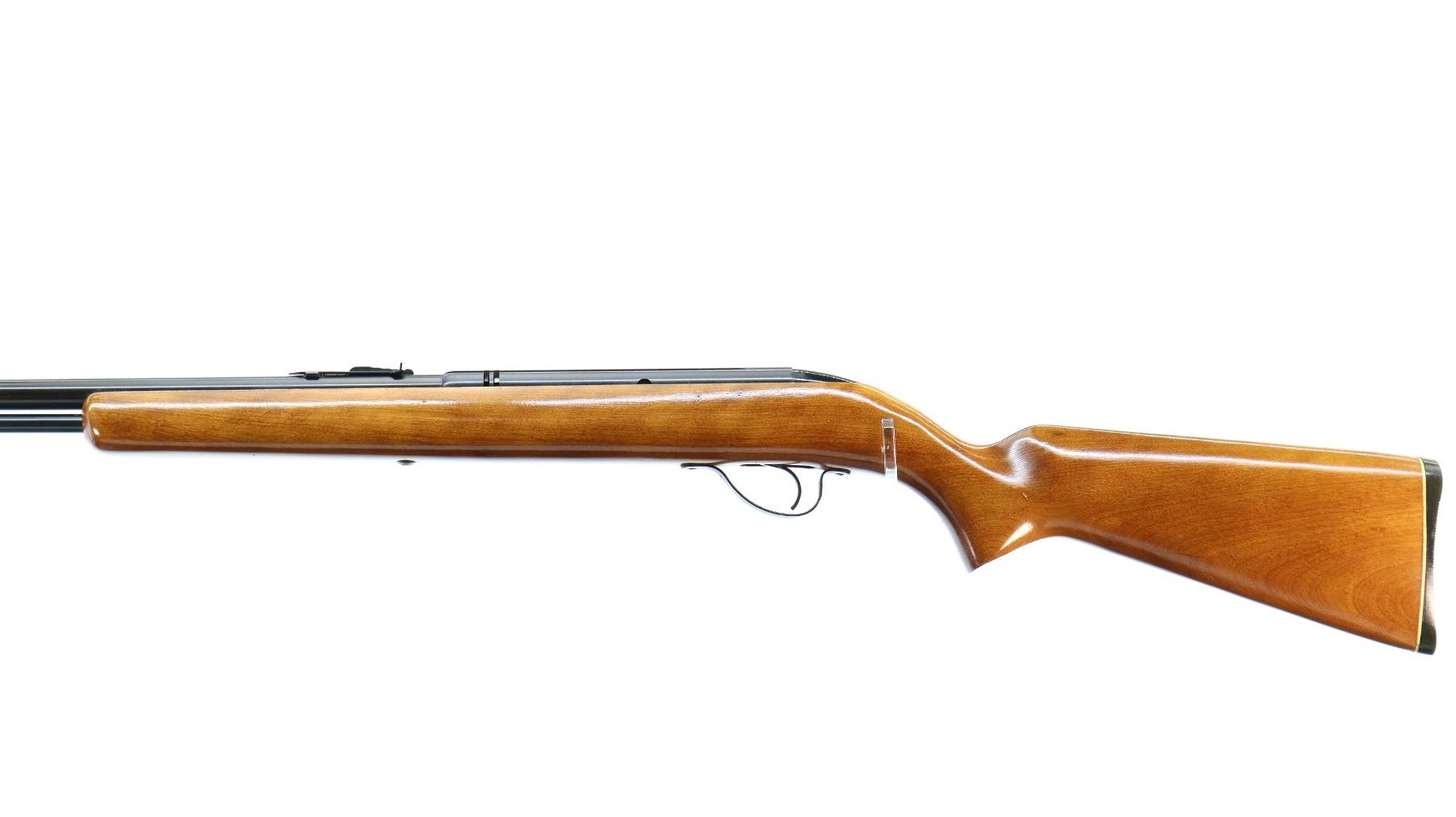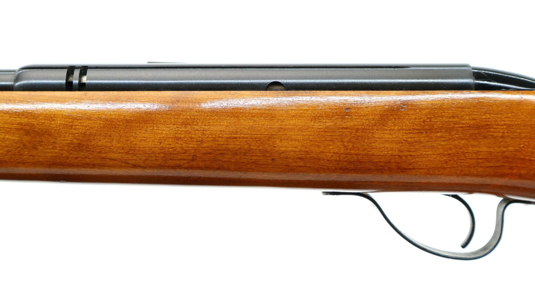Main Description: Blade front sight, adjustable u notched rear sight, blued finish, grooved receiver and bolt knob. One piece wood stock, pistol grip, grooved black polymer butt plate.