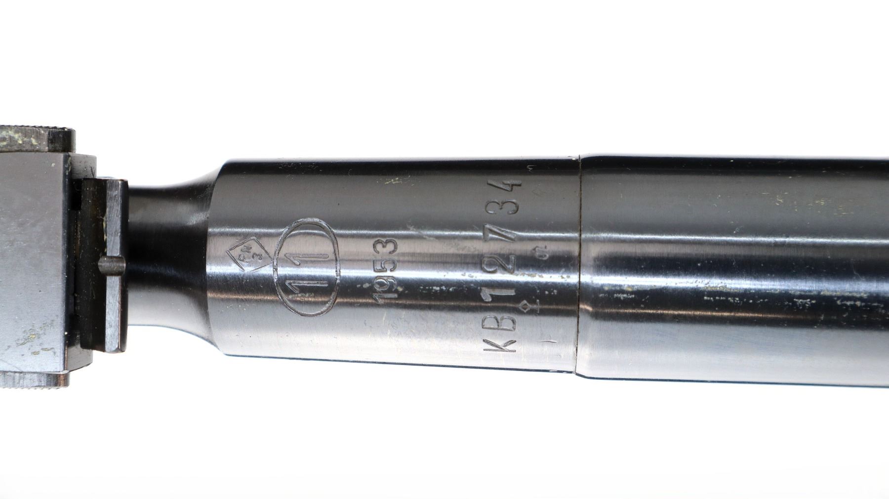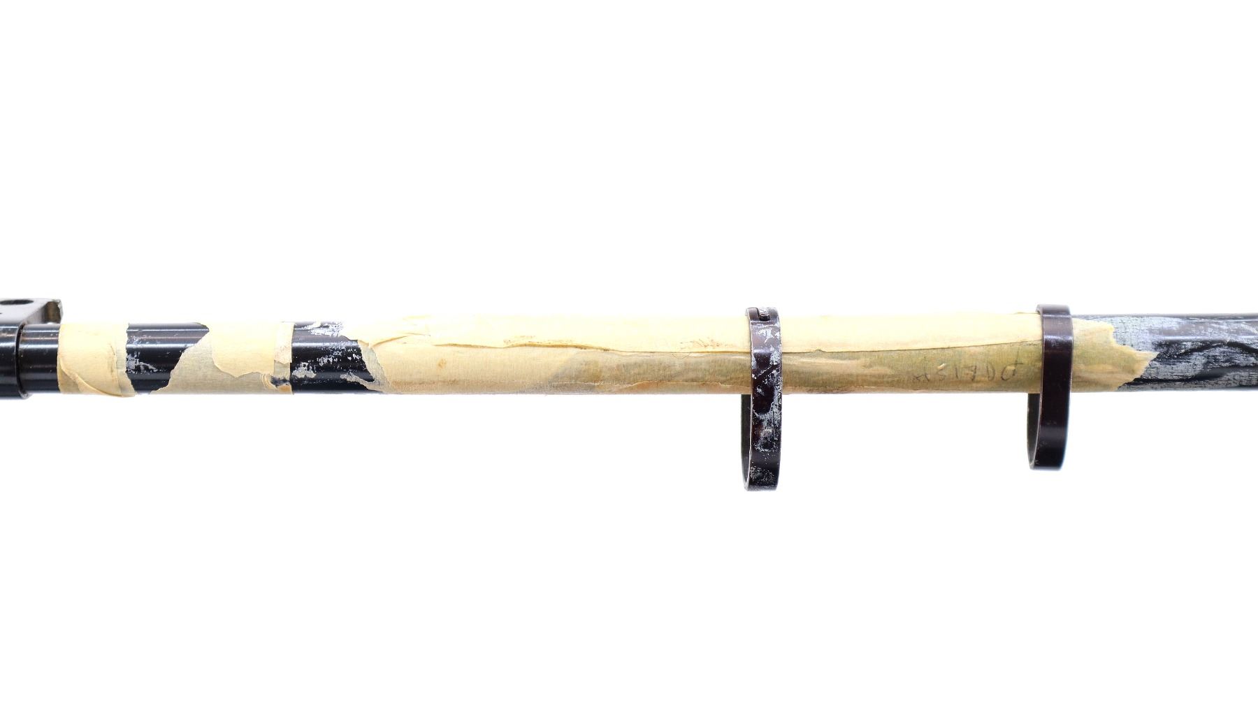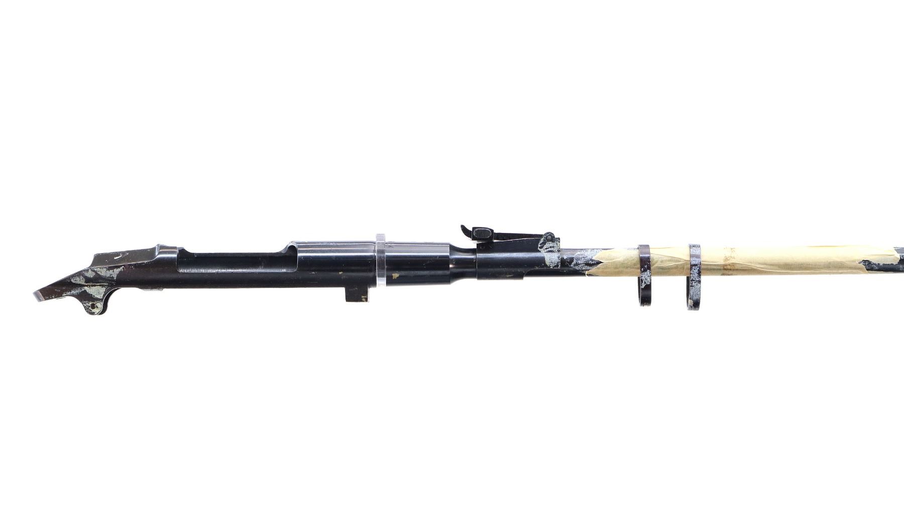 Main Description: Manufactured by Factory 11 1953, Post front sight with hood and ramp, adjustable u notched rear sight, blued finish with some masking tape remaining, round receiver. Includes two barrel bands and damaged bayonet mount. No other parts or stocks are included
