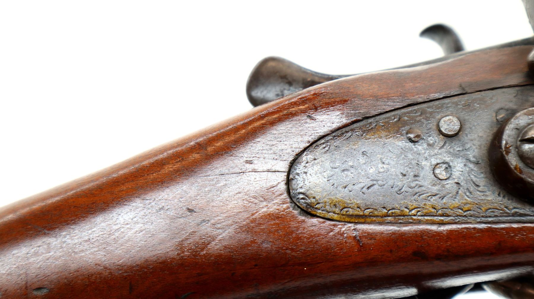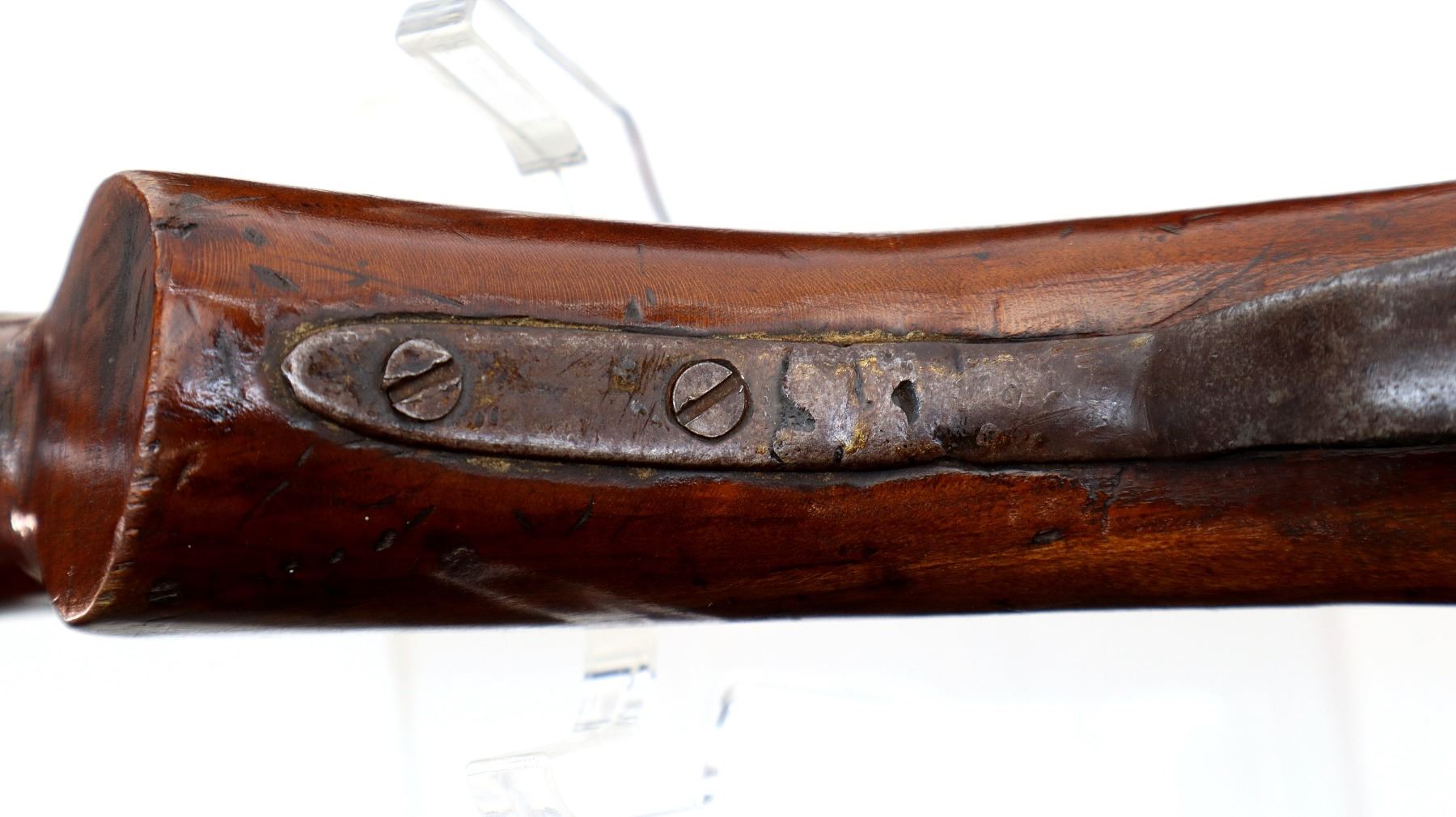 Wear: Metal finish turning brown with pitting, light rust, scratches, handling marks and wear. Stocks show marks, scratches and wear.