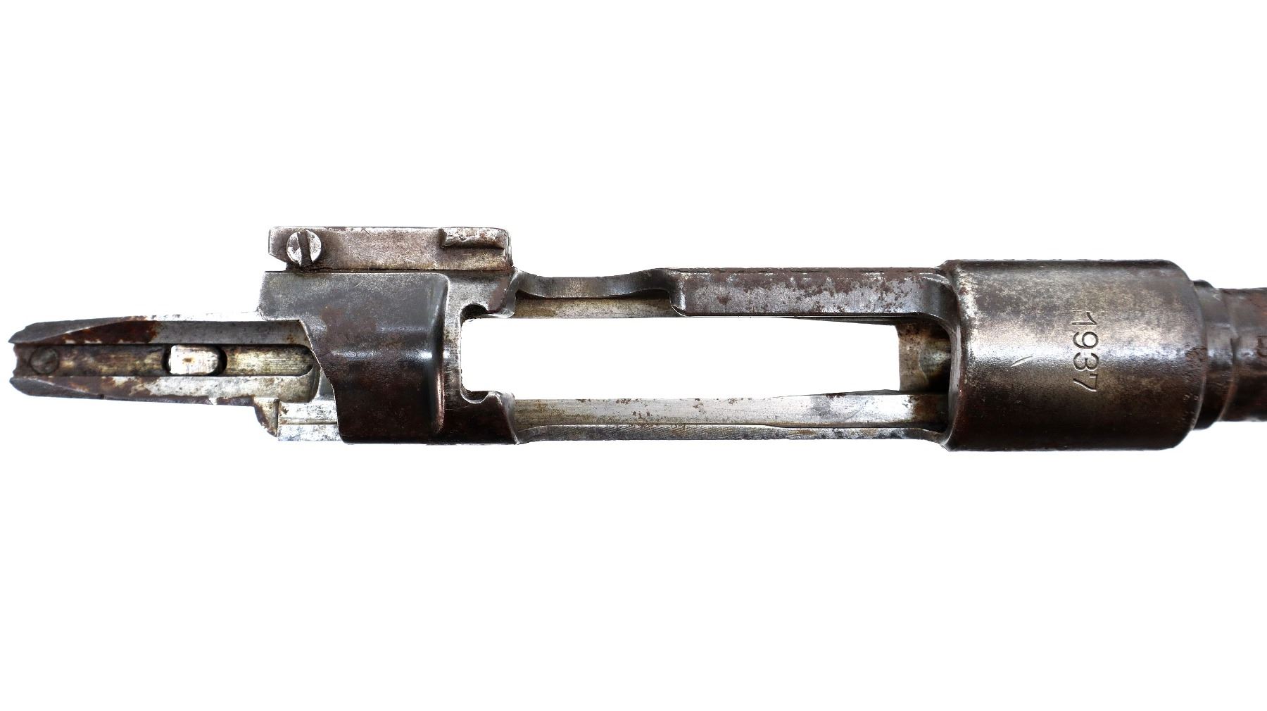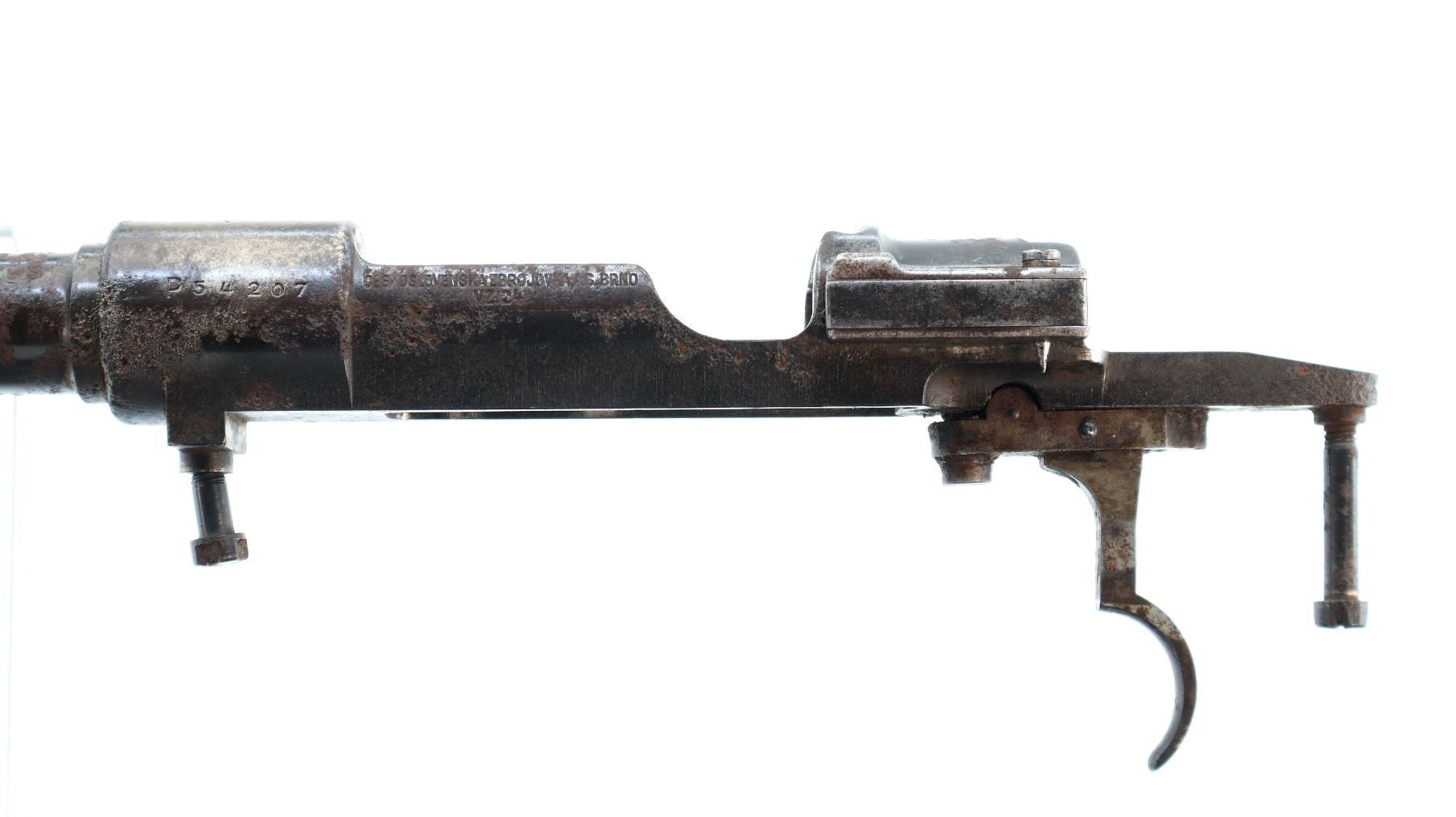 Main Description: Manufactured by Brno 1937. Missing front sight ramp is broken, has an adjustable u notched rear sight, includes bolt stop trigger with sear and action screws. No other parts or stocks are included.