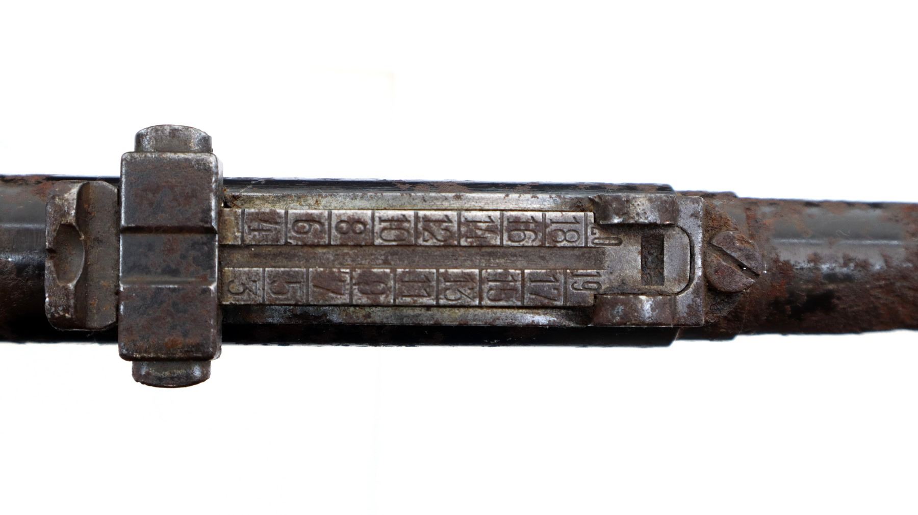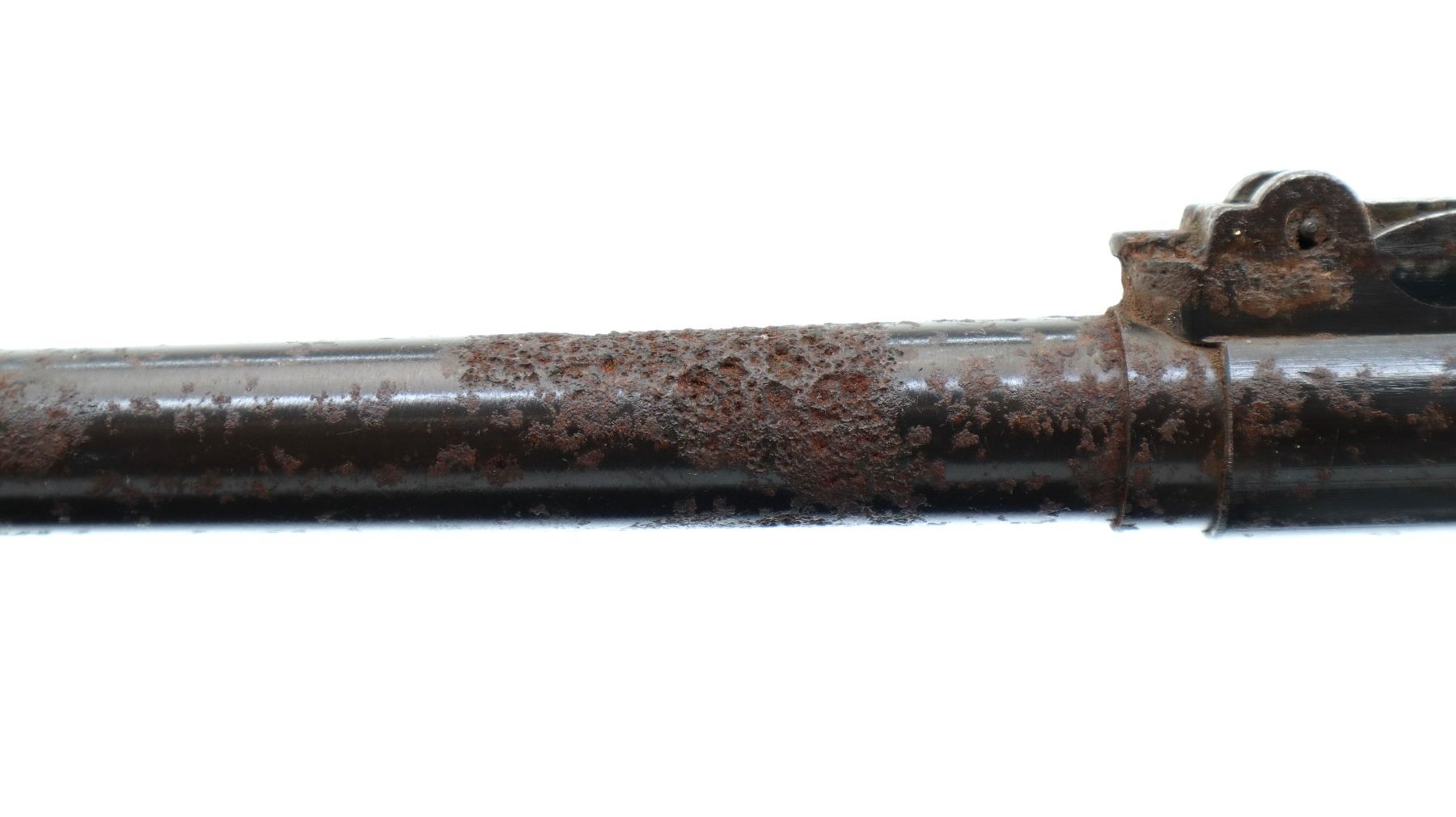 Wear: Metal finish shows pitting, rust, scratches, handling marks and wear.