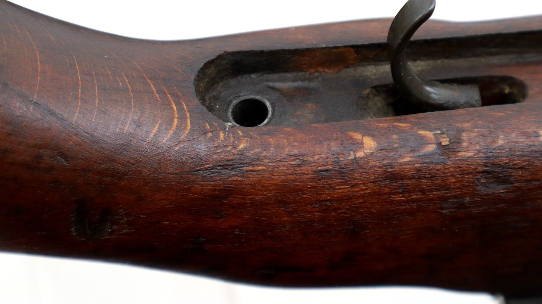 Wear: Metal finish shows some light rust speckles, scratches, handling marks and wear. Stock shows some marks, scratches and wear.