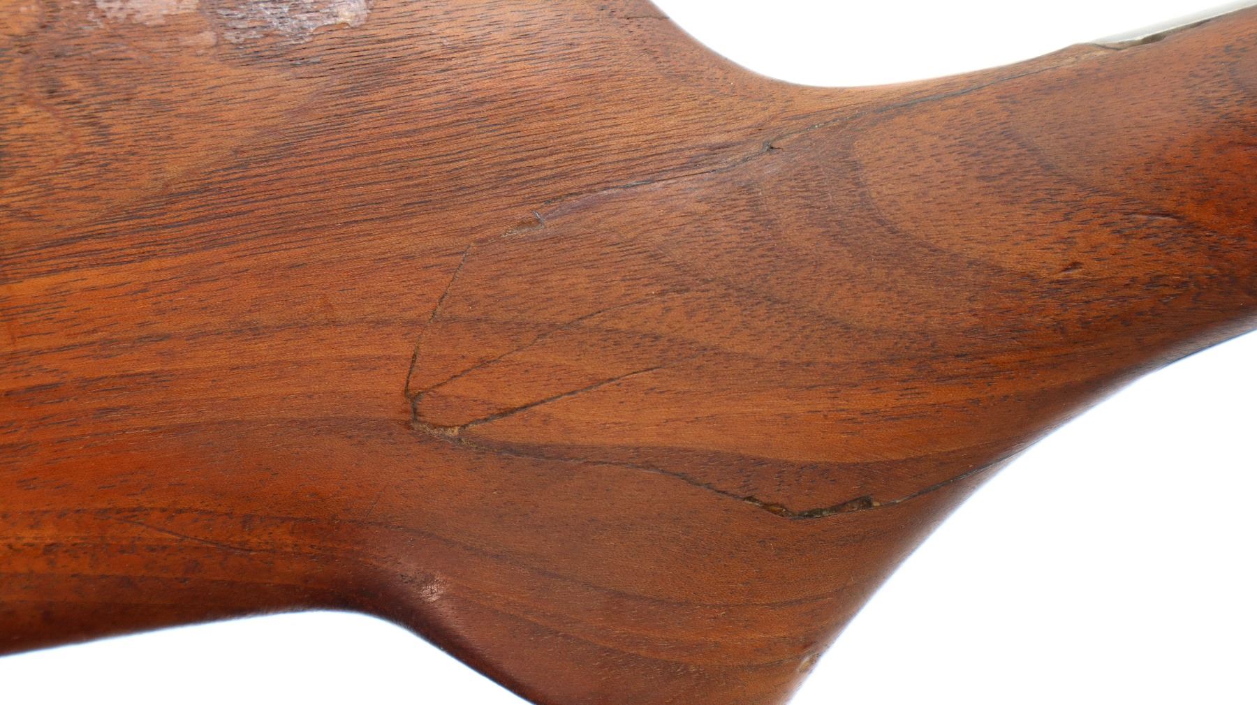 Wear: Metal finish turning silver grey with pitting, light rust speckles, scratches, handling marks and wear. Stocks show marks, scratches and wear.