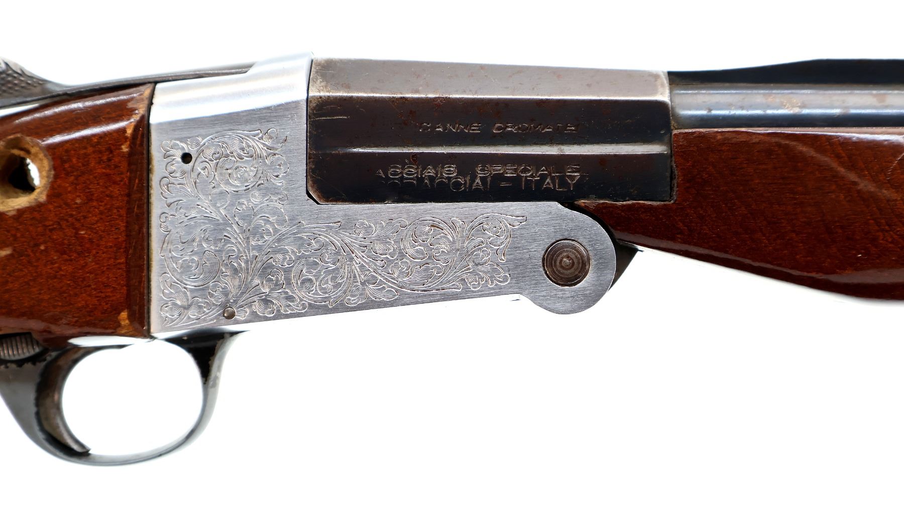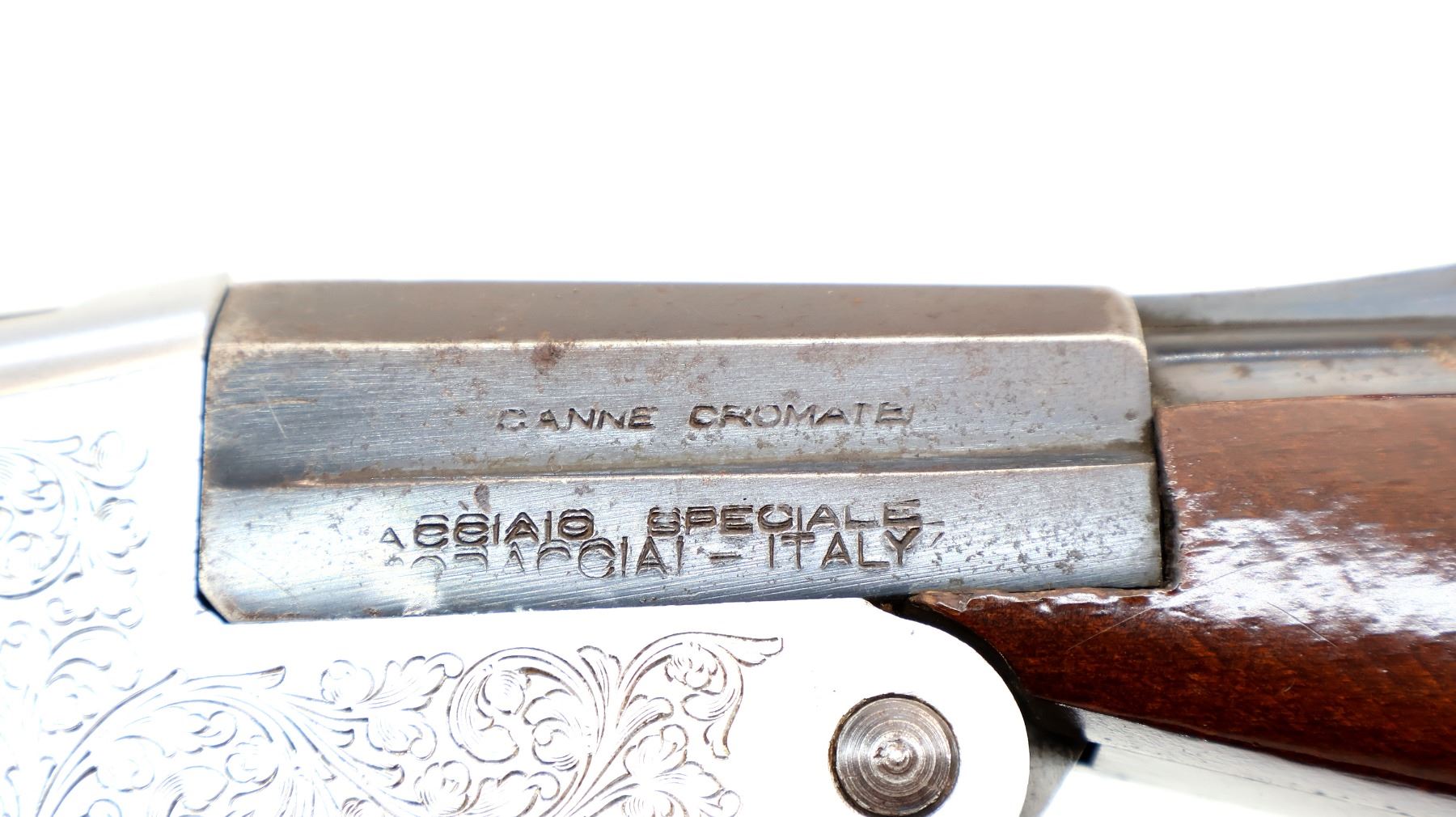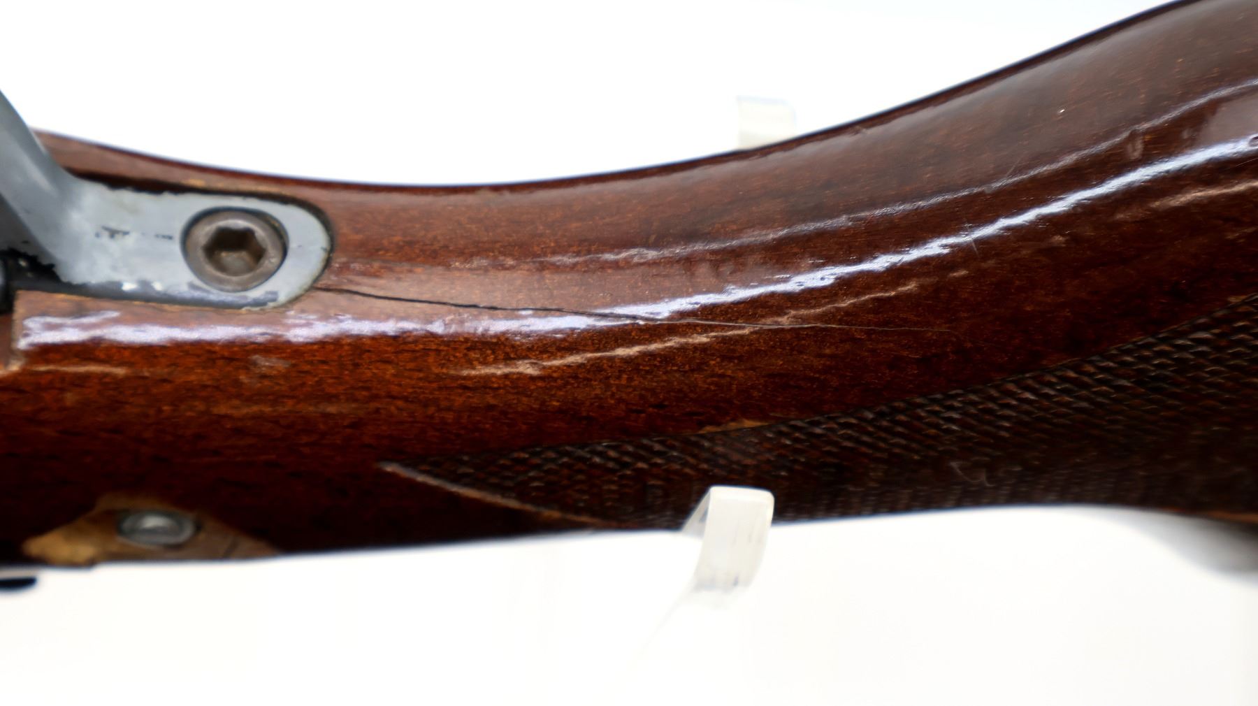 Wear: Metal finish shows some light rust speckles, scratches, handling marks and wear. Stocks show some marks, scratches and wear.