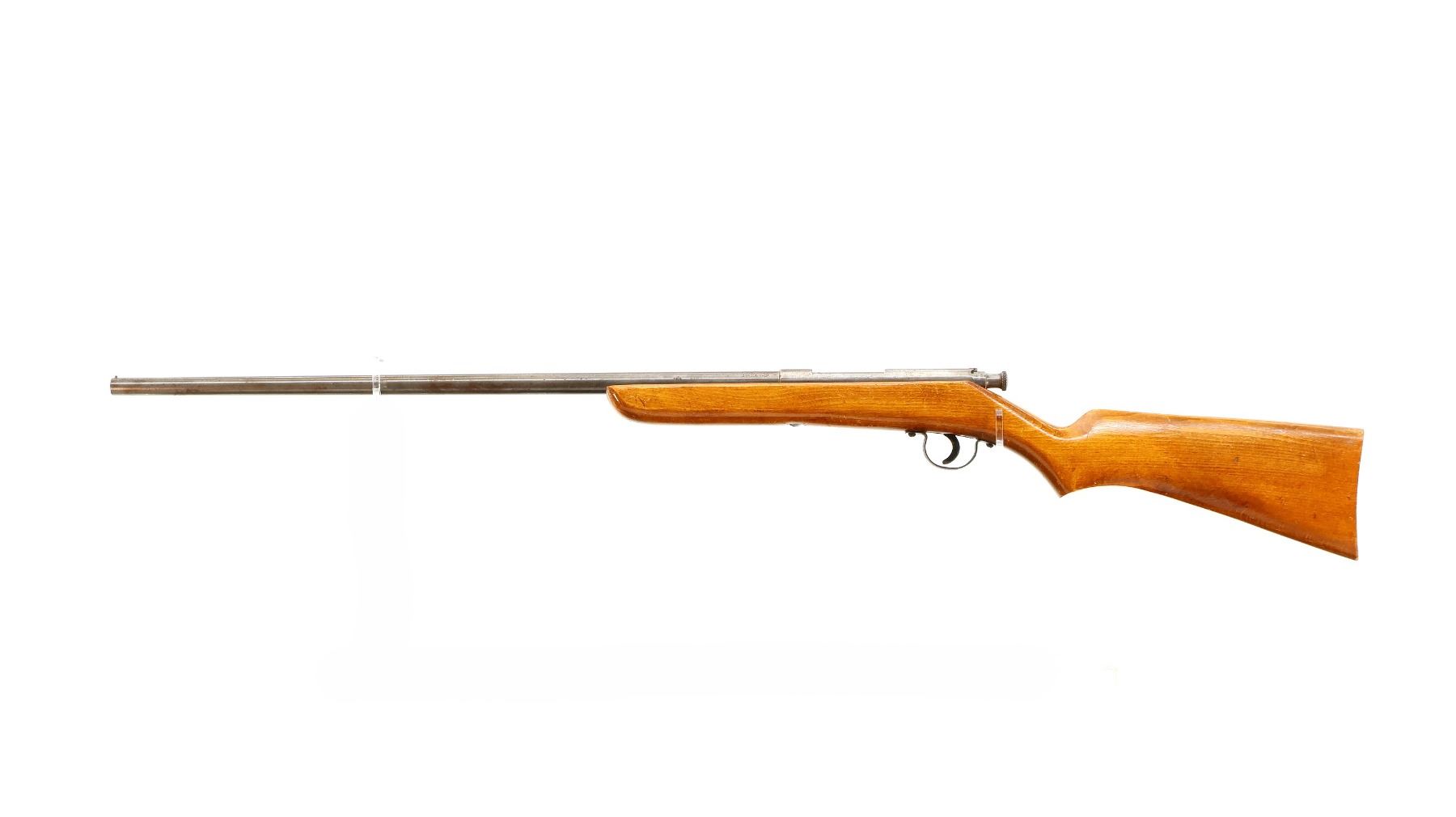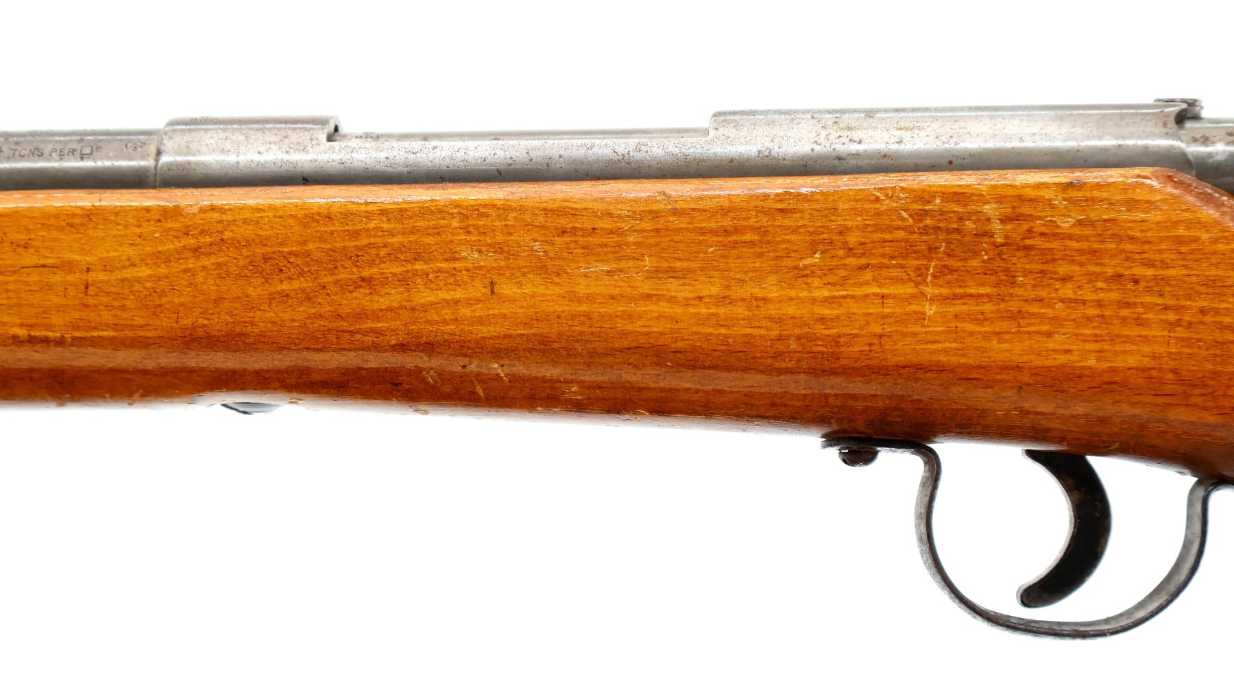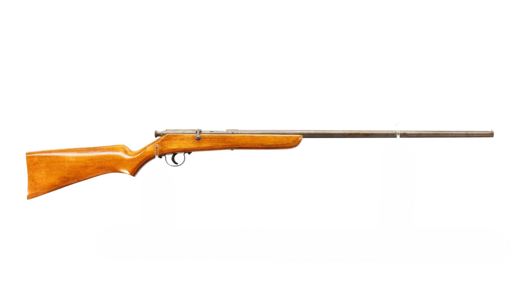 Main Description: Brass bead, round barrel, smooth bolt knob, extractor is present, action does not function requires adjustment parts or repair. One piece wood stock, pistol grip, smooth butt