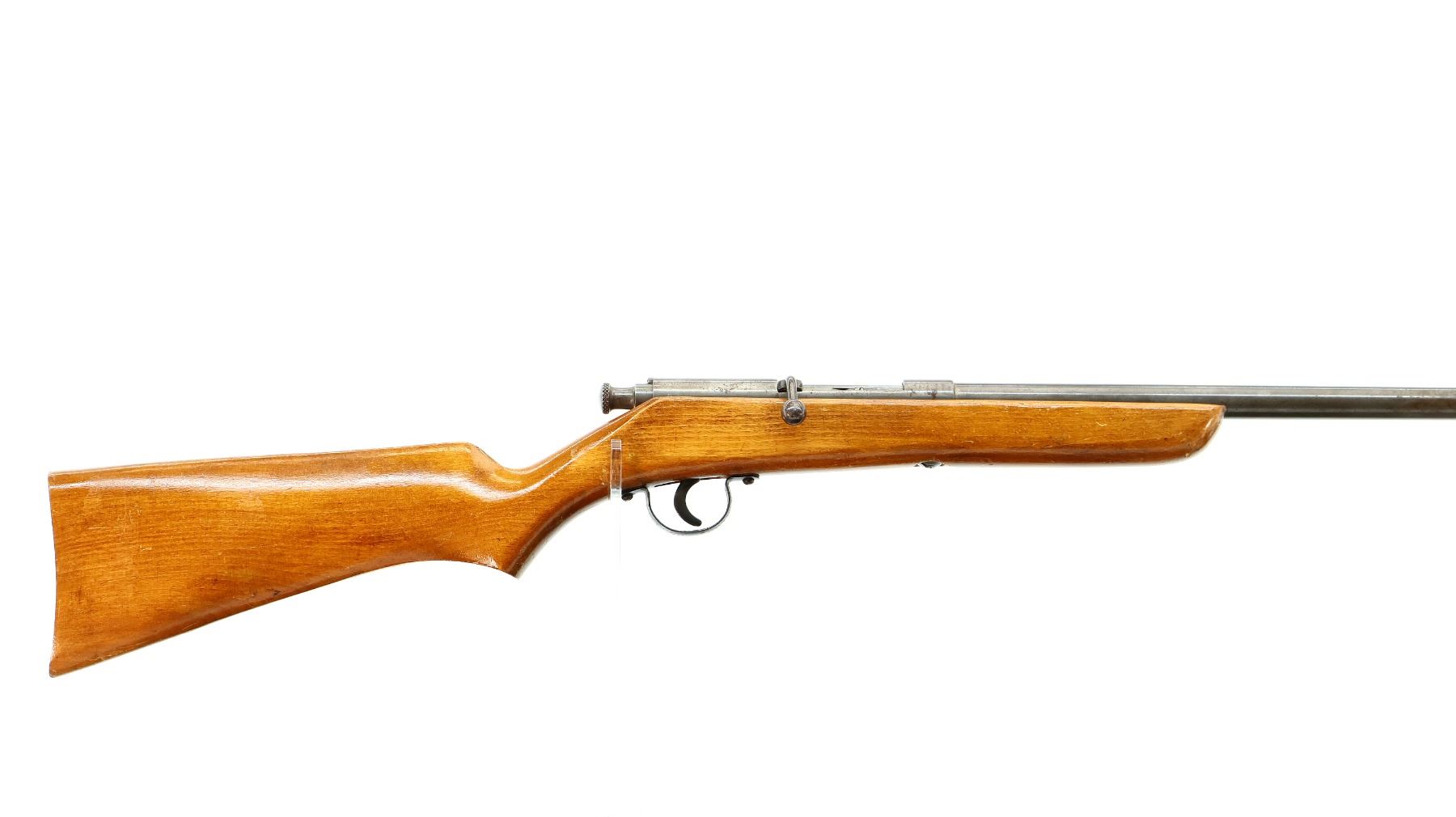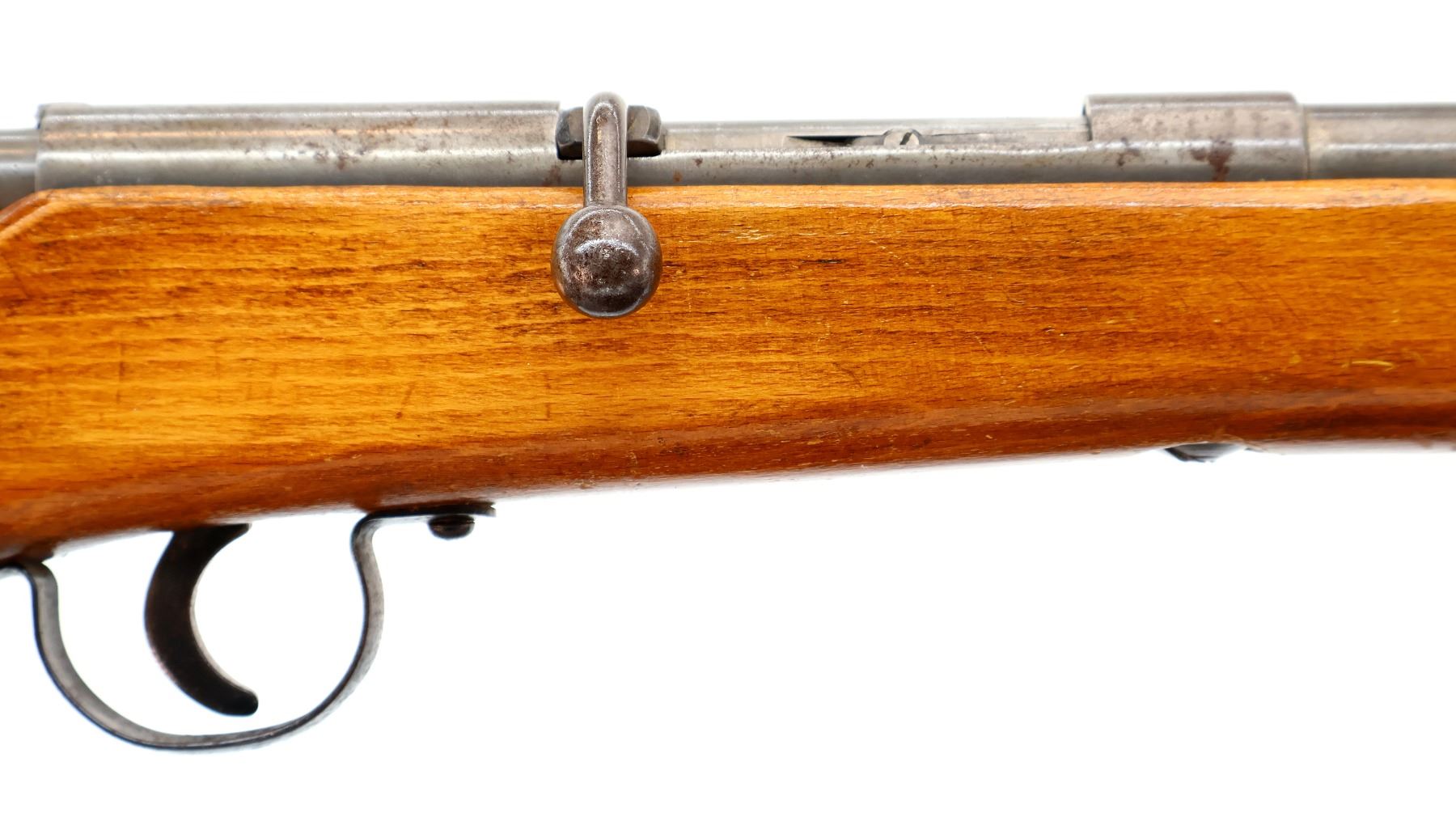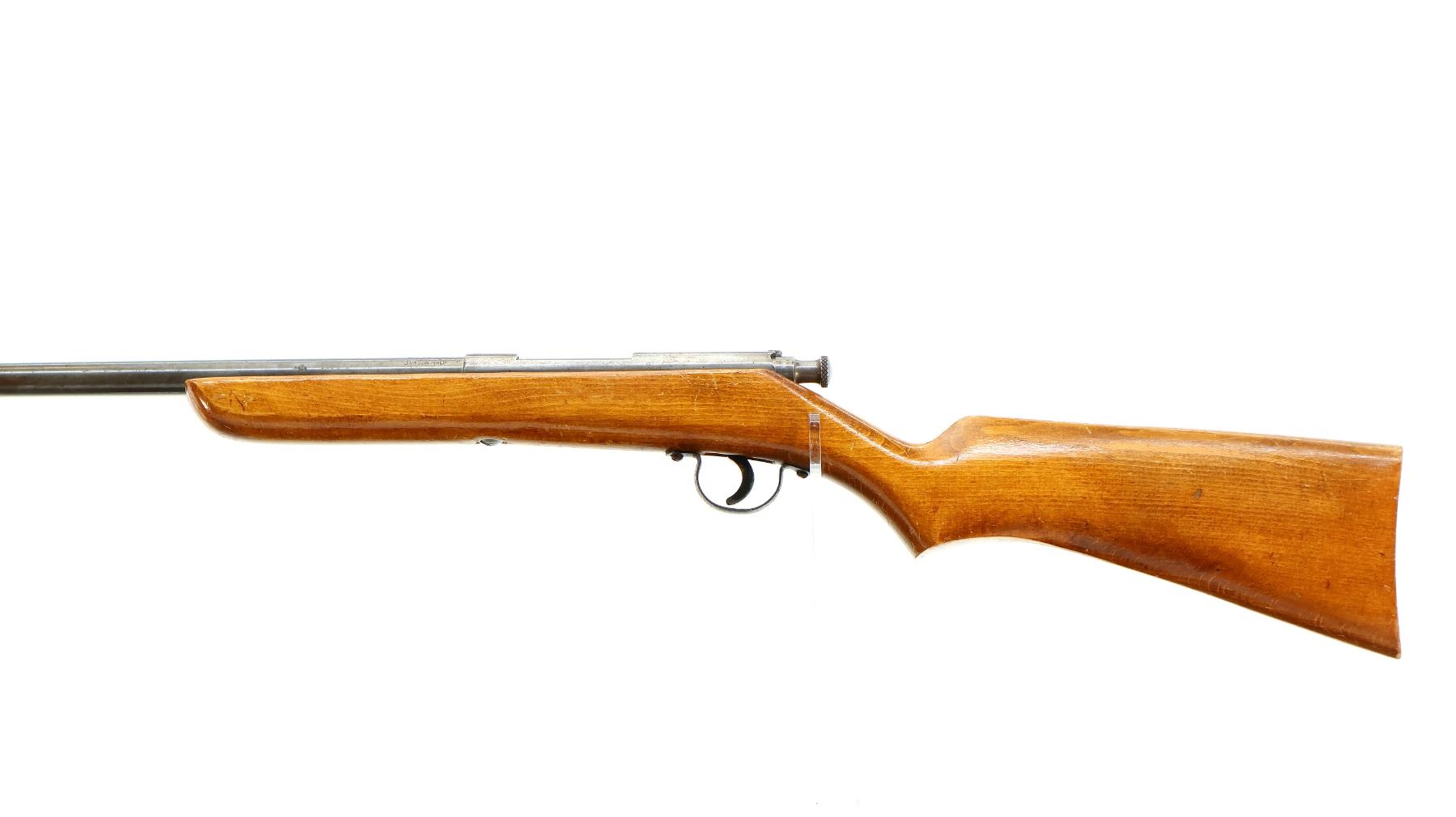 Main Description: Brass bead, round barrel, smooth bolt knob, extractor is present, action does not function requires adjustment parts or repair. One piece wood stock, pistol grip, smooth butt