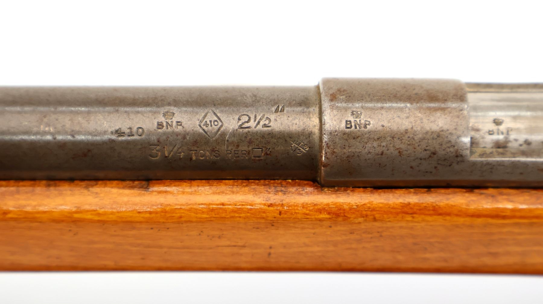 Wear: Metal finish turning silver grey with pitting, light rust, scratches, handling marks and wear. Stock shows marks, scratches and wear.