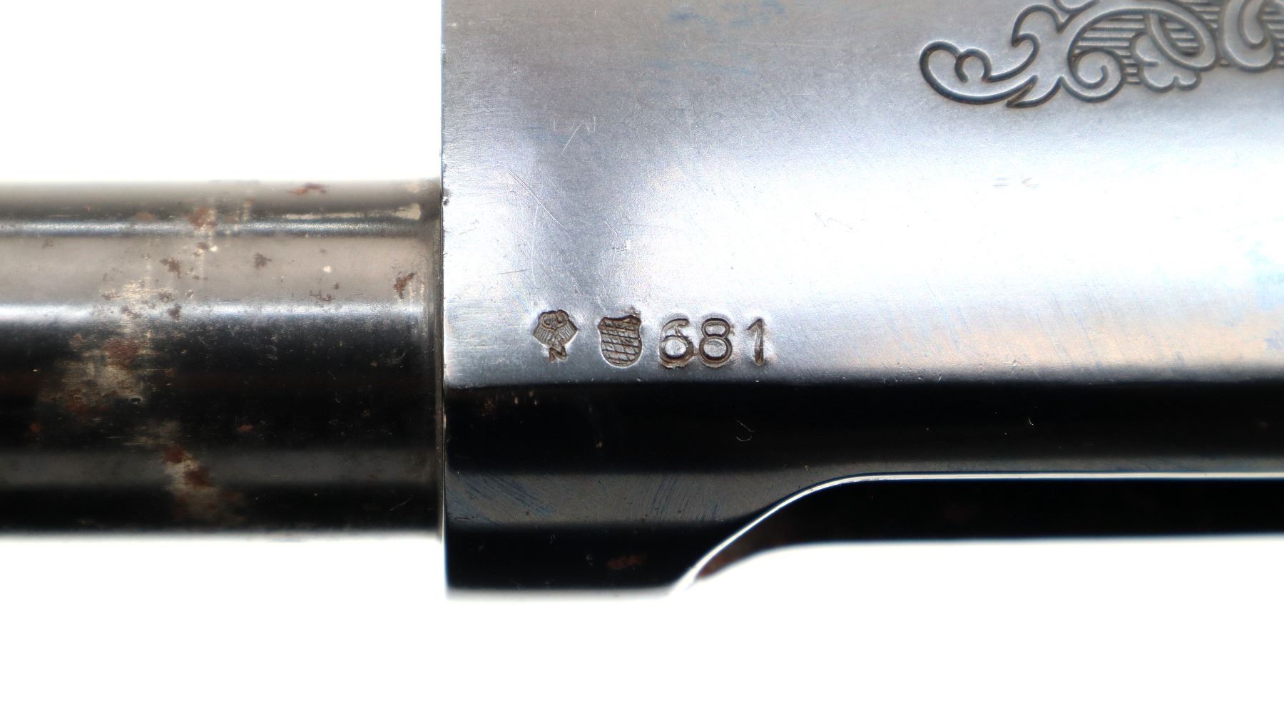 Wear: Metal finish shows some light pitting, rust speckles, scratches, handling marks and wear.