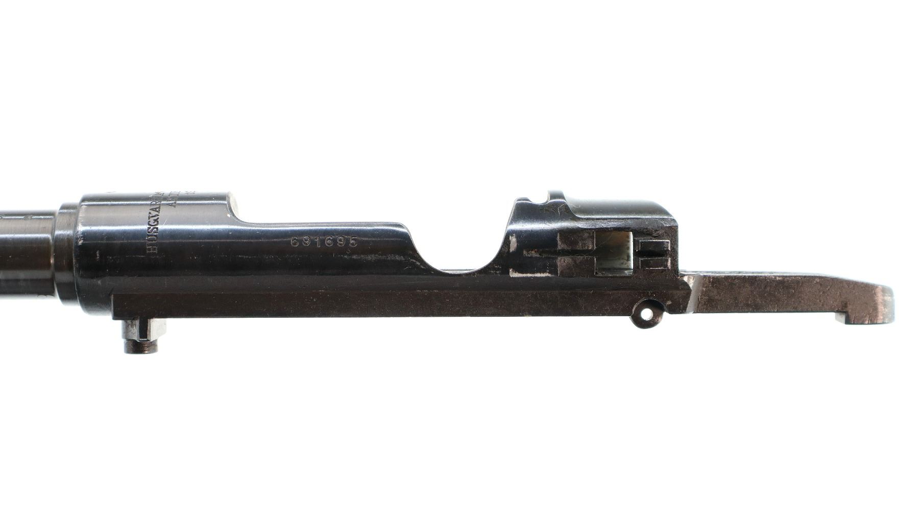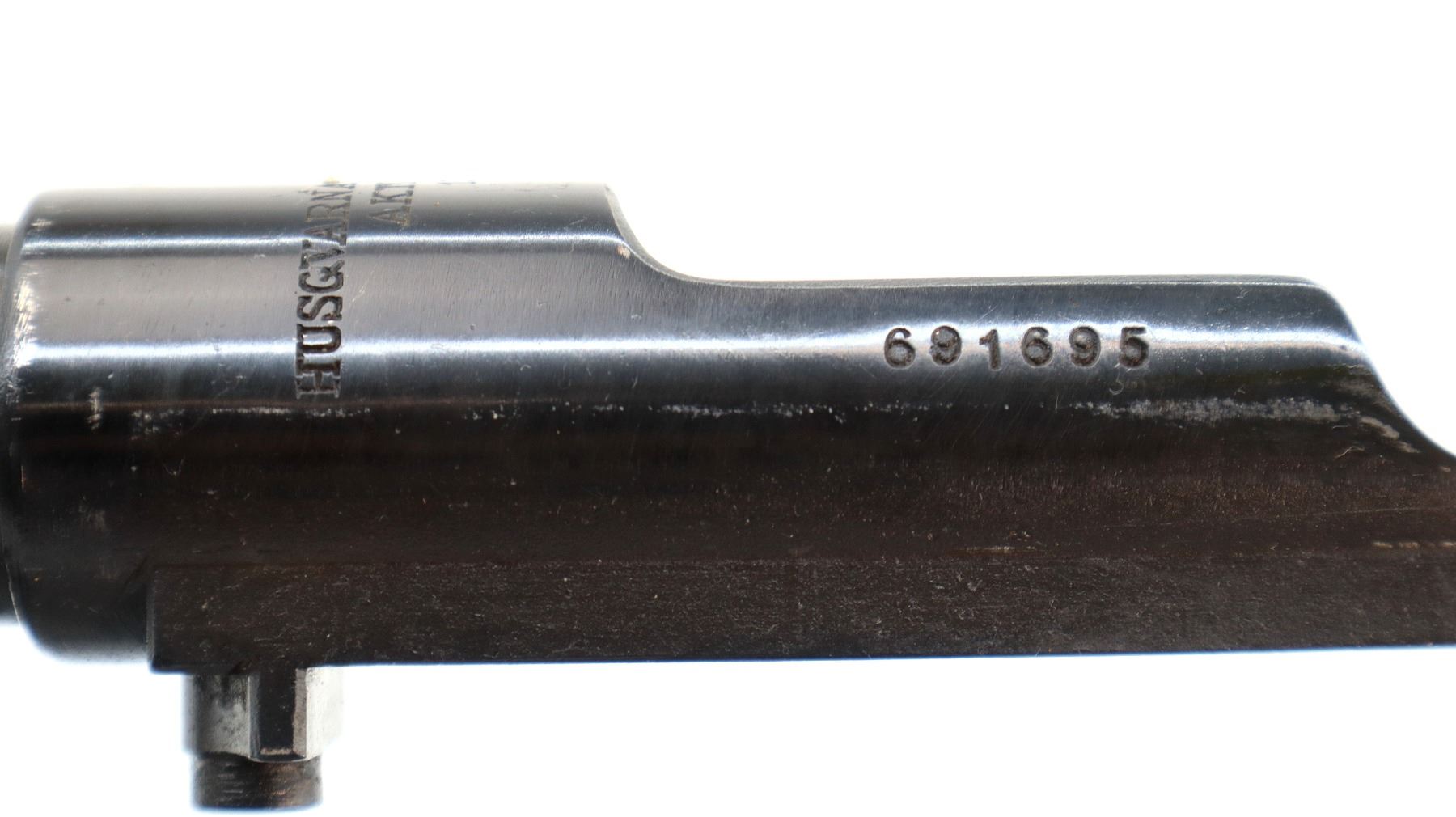 Main Description: Manufactured by Husqvarna. Missing sights, blued finish threaded muzzle with no cap, receiver ring only drilled and tapped, it’s a barrel and stripped receiver, missing all other parts and stock.