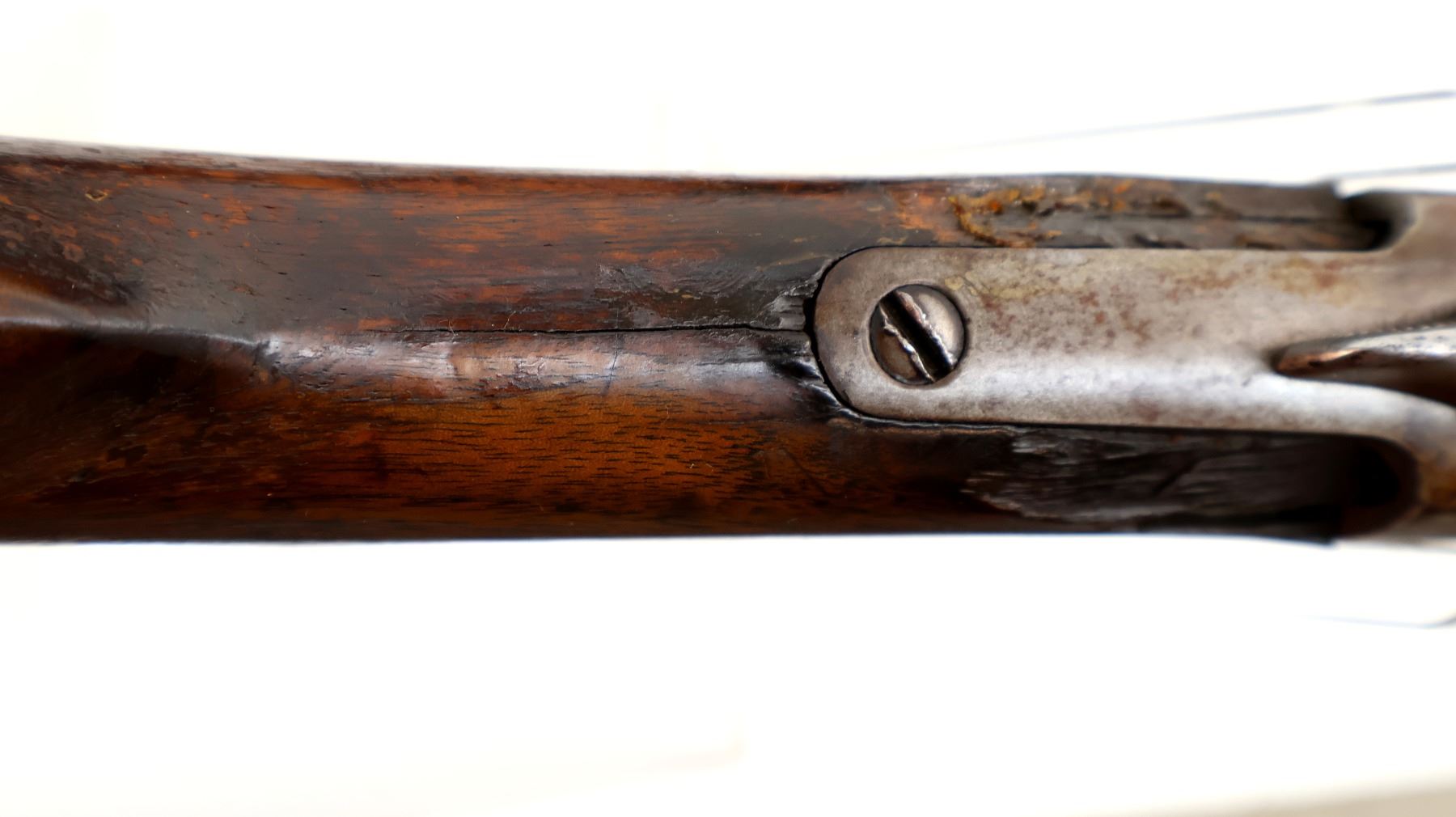 Wear: Metal finish turning silver grey with pitting, light rust, scratches, handling marks and wear. Stocks show marks, scratches and wear.