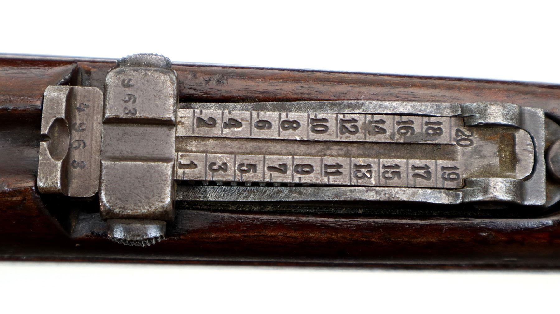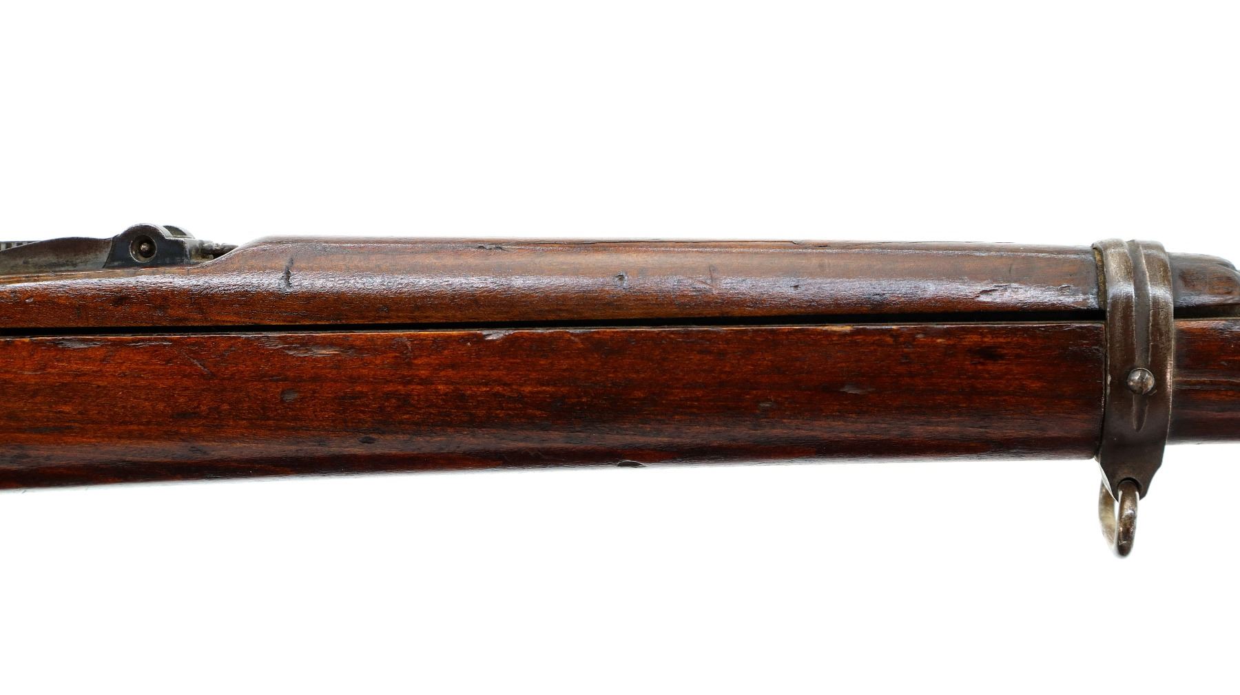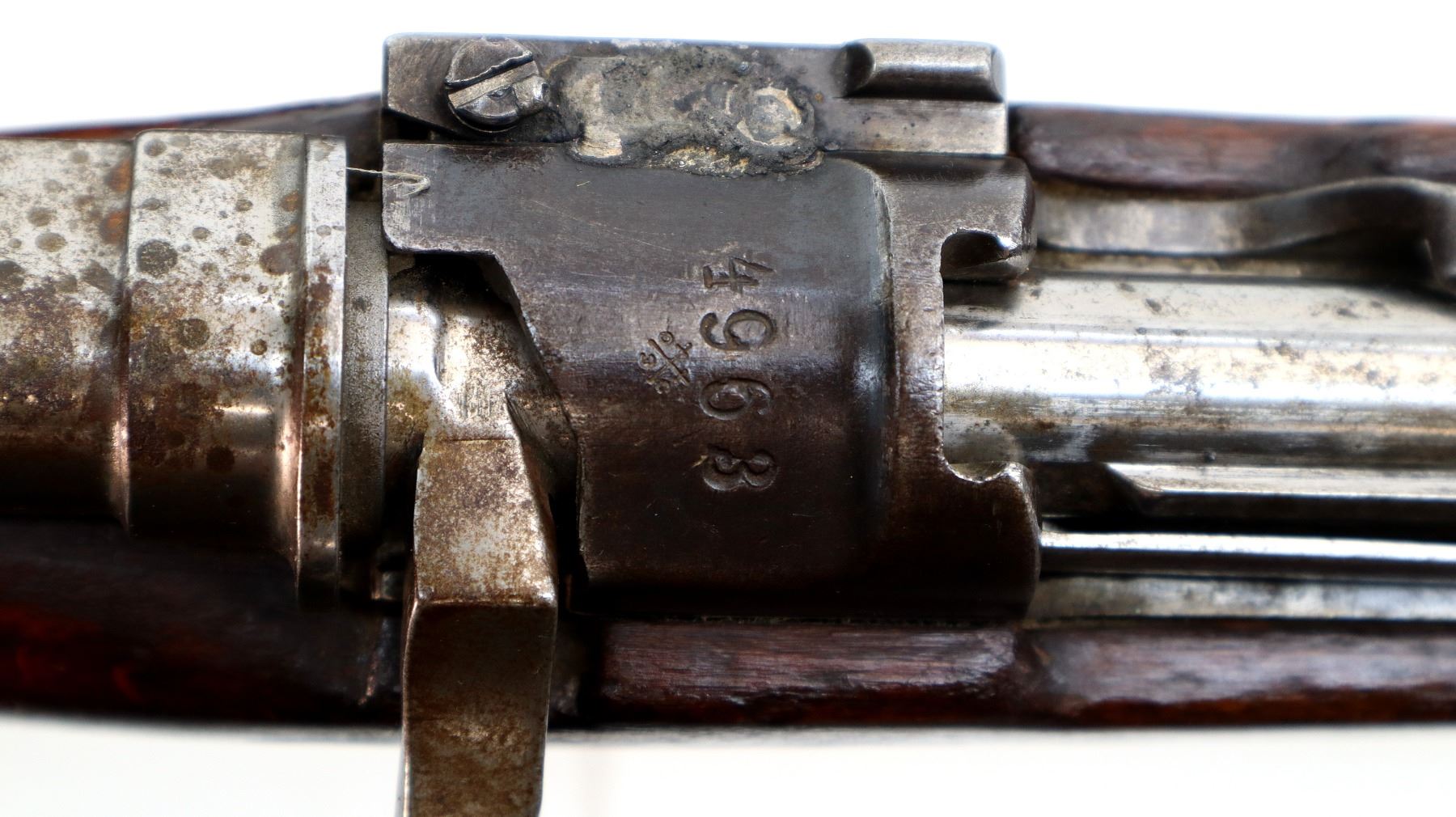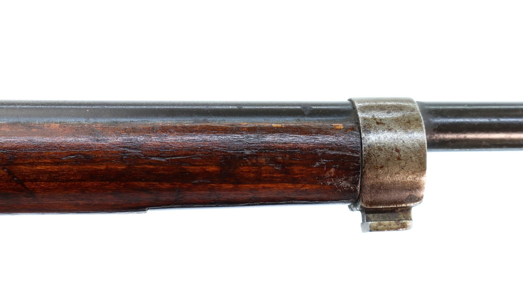Main Description: This deactivation has pins and a slot cut through the chamber and receiver, bolt face modified, one visible weld on bolt stop, bolt cannot be removed. Marked TC SAFA Ankara 1937, numbers mismatched. Barley corn front sight with ramp, adjustable u notched rear sight, modified bolt handle, bolt shroud is incomplete. Two piece full military wood stocks, handguard is cracked, pistol grip, chipped and cracked behind receiver, smooth steel butt plate, steel stock disk, sling swivels, bayonet lug, missing cleaning rod.