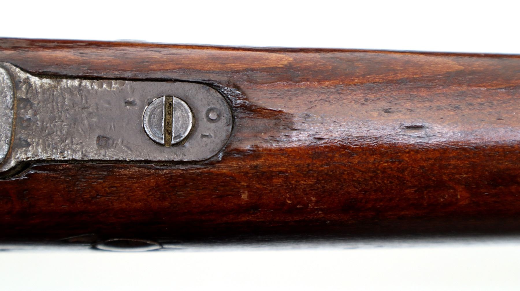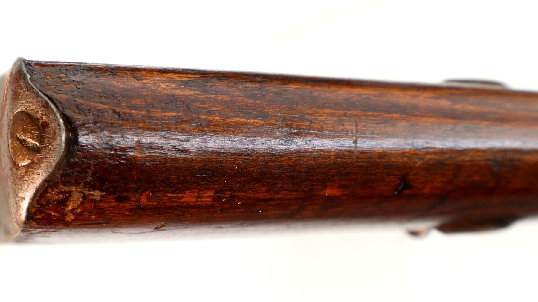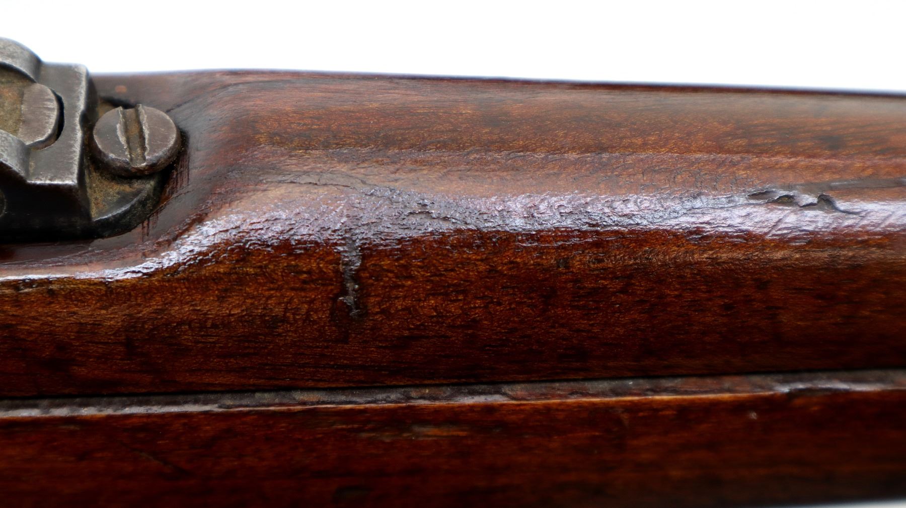 Wear: Metal finish turning silver grey with light pitting, rust speckles, scratches, handling marks and wear. Stocks show marks, scratches and wear.