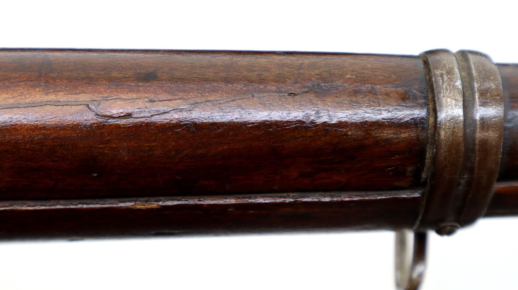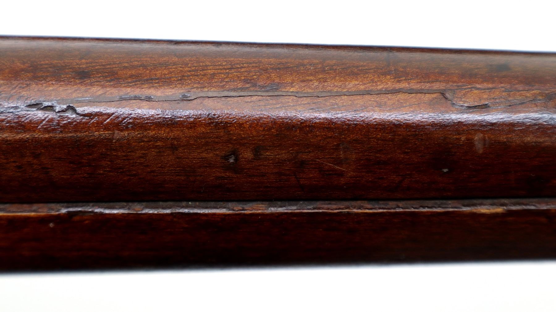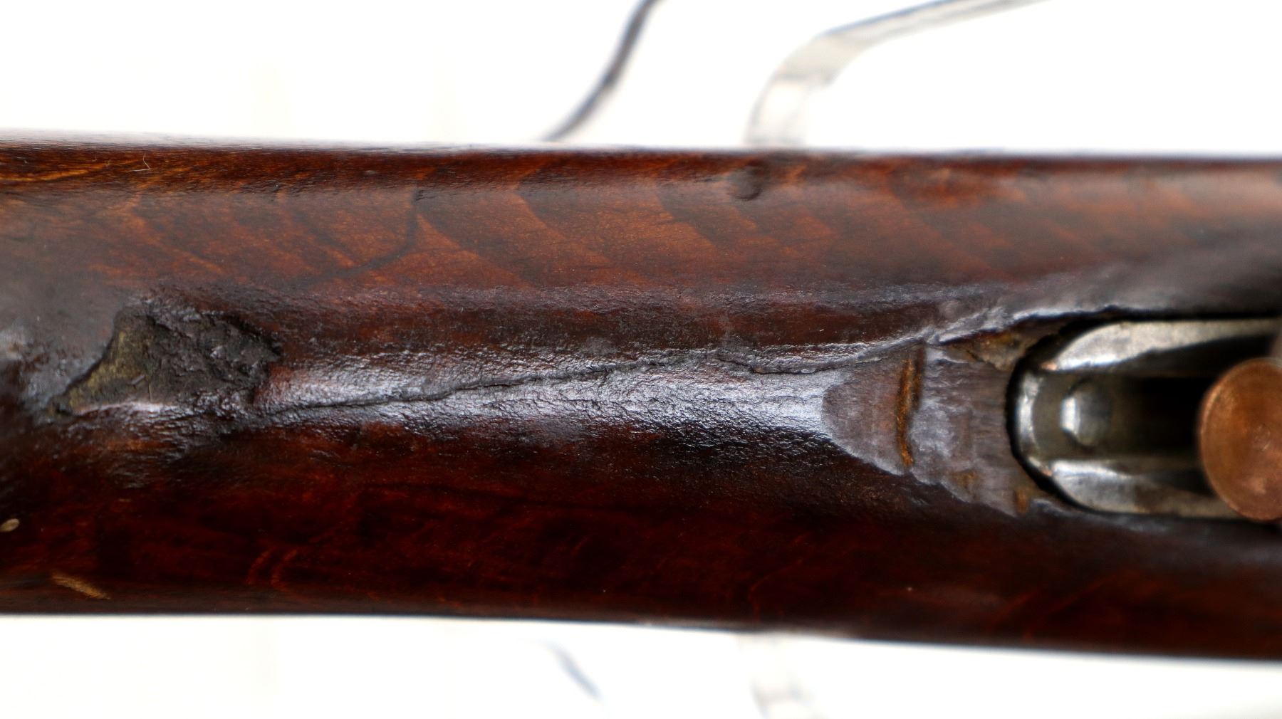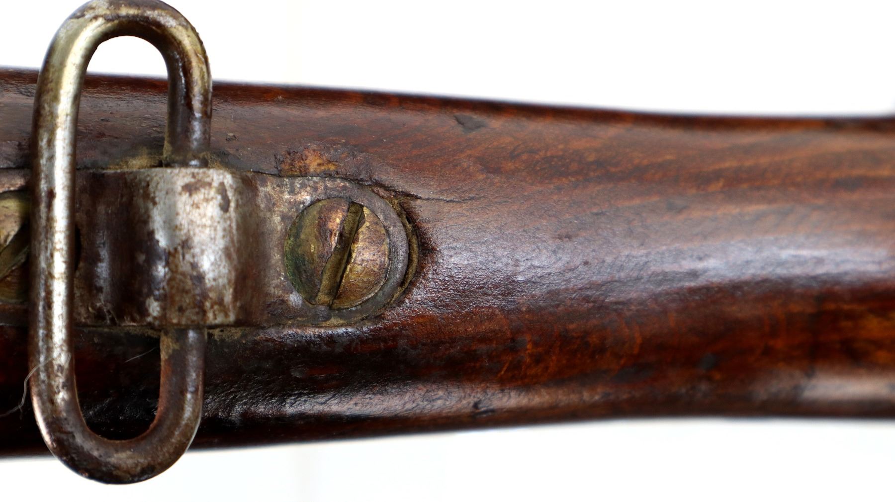 Wear: Metal finish turning silver grey with light pitting, rust speckles, scratches, handling marks and wear. Stocks show marks, scratches and wear.