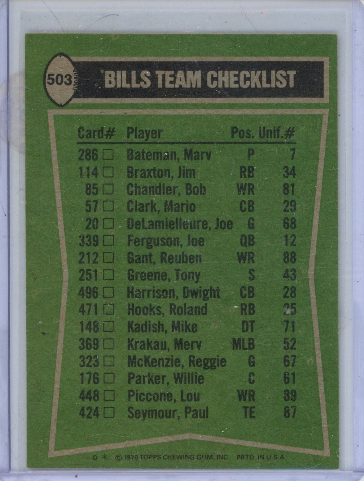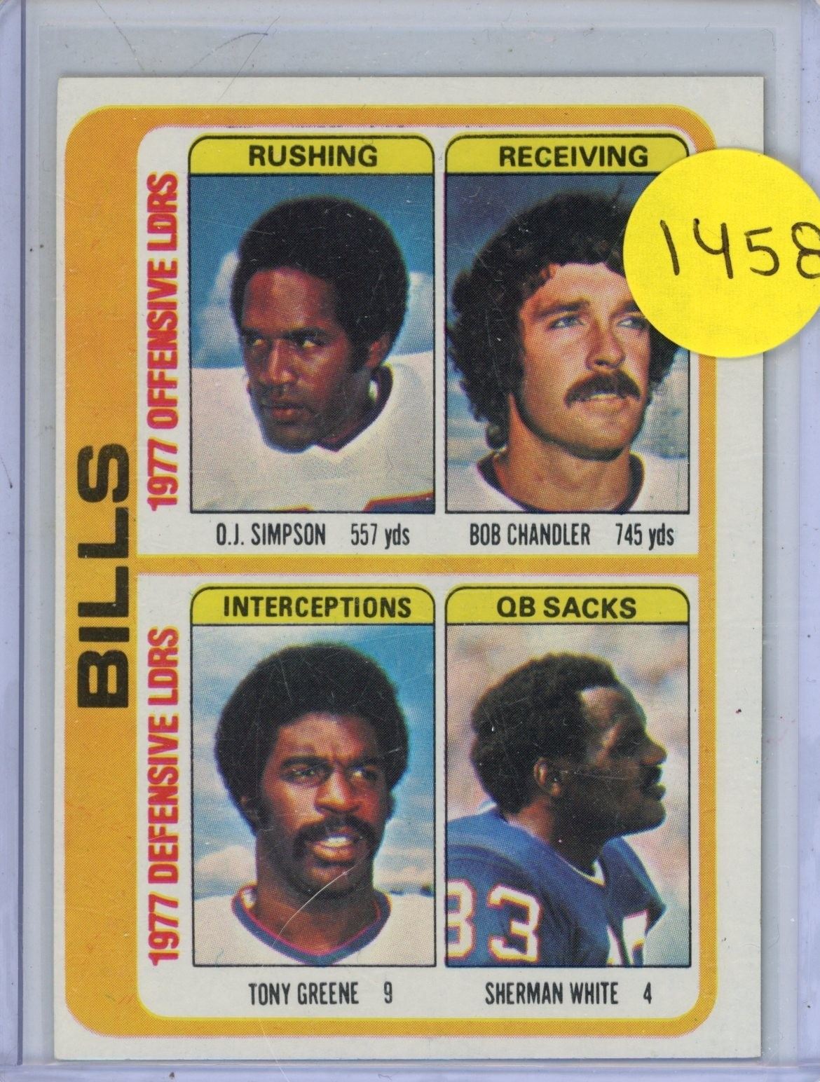 Lot 1458 1978 Topps Bills Leaders. (O.J. Simpson, Bob Chandler, Tony Greene, Sherman White)