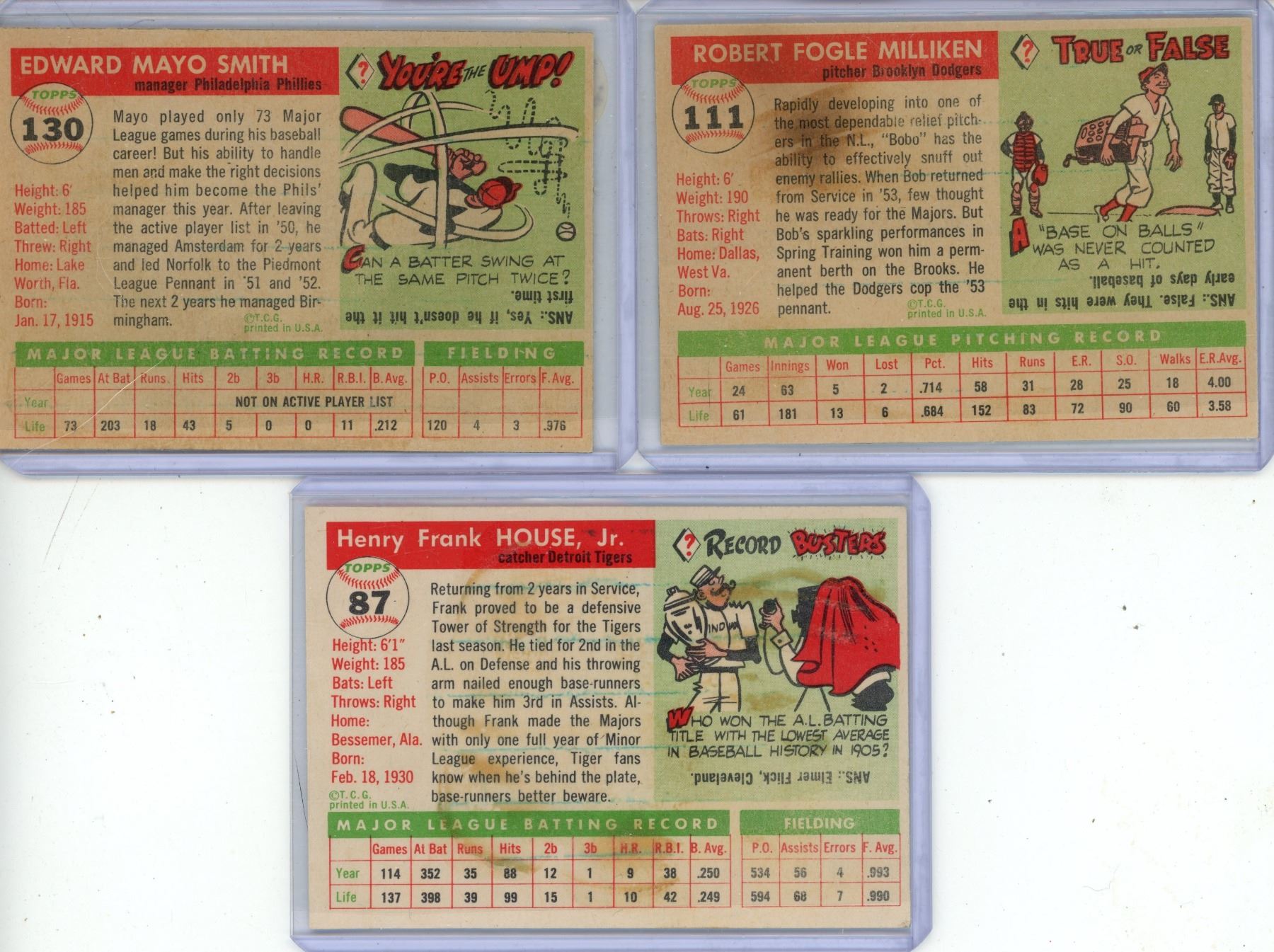 Lot 1459 (3) 1955 Topps Baseball Cards. (Poor Condition)