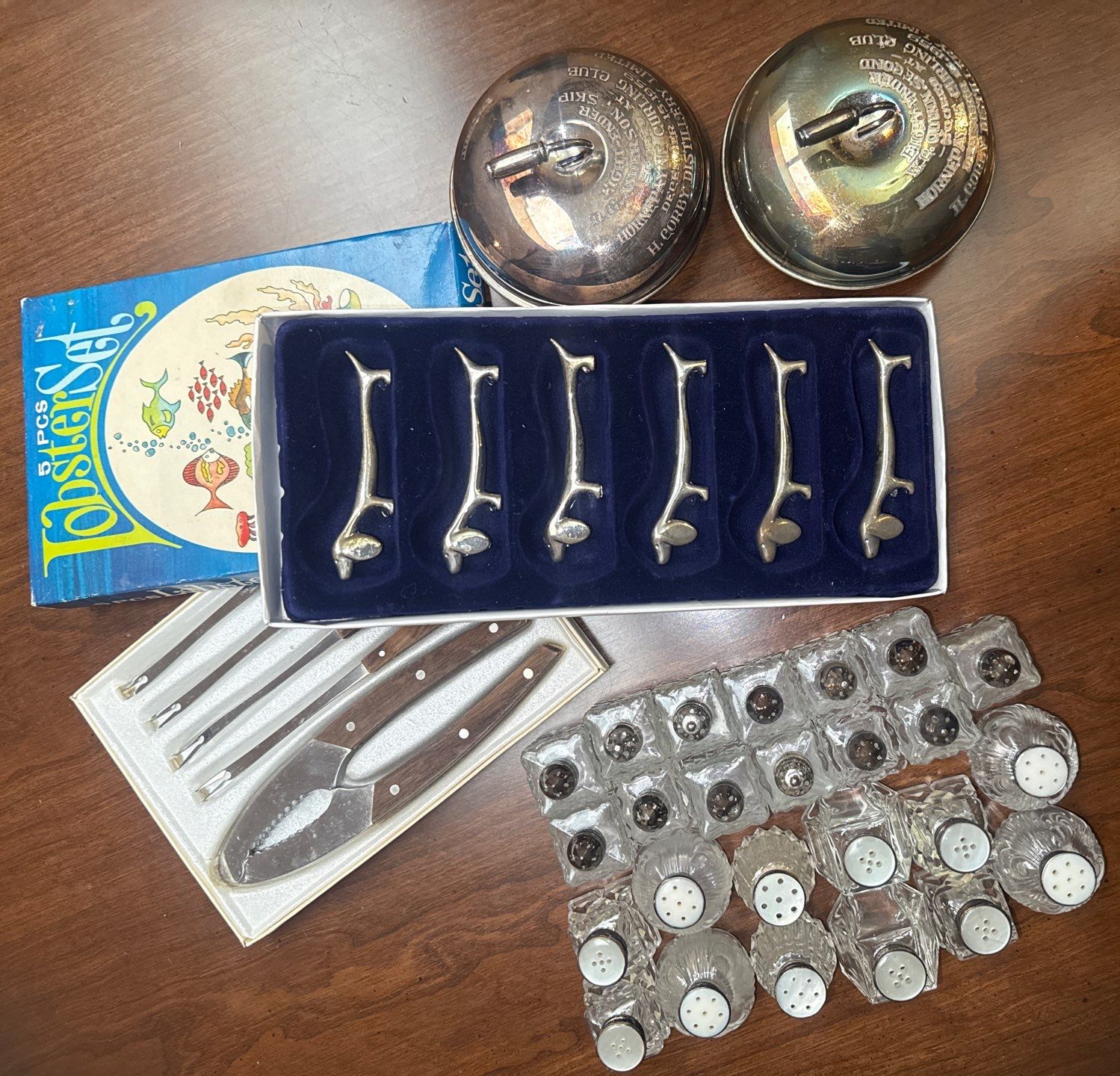 Lot 50 Vintage Silverplated Table Accessories - Dog Knife Stands Lobster Set S+P Shakers