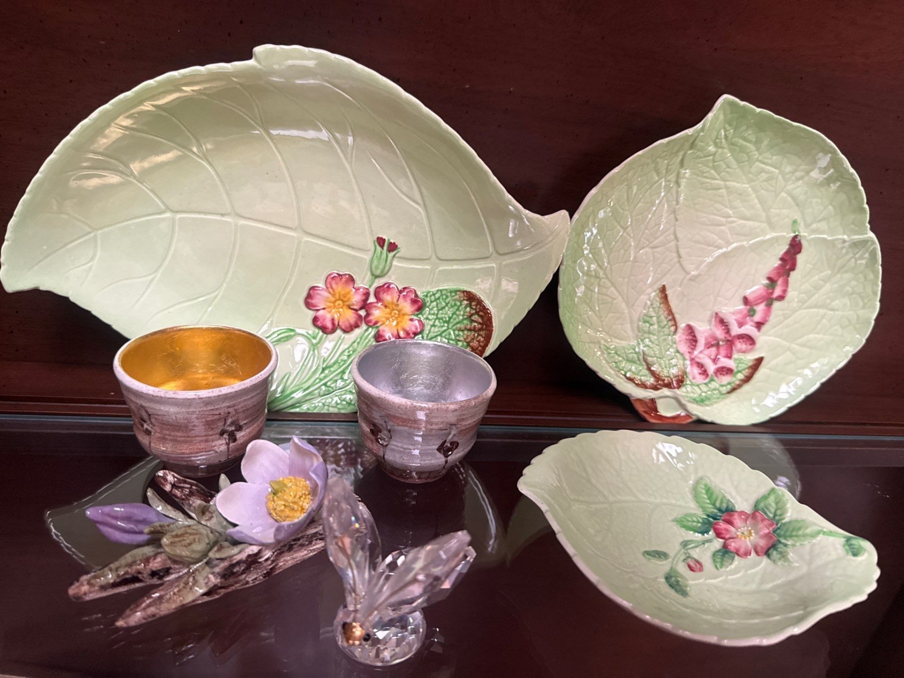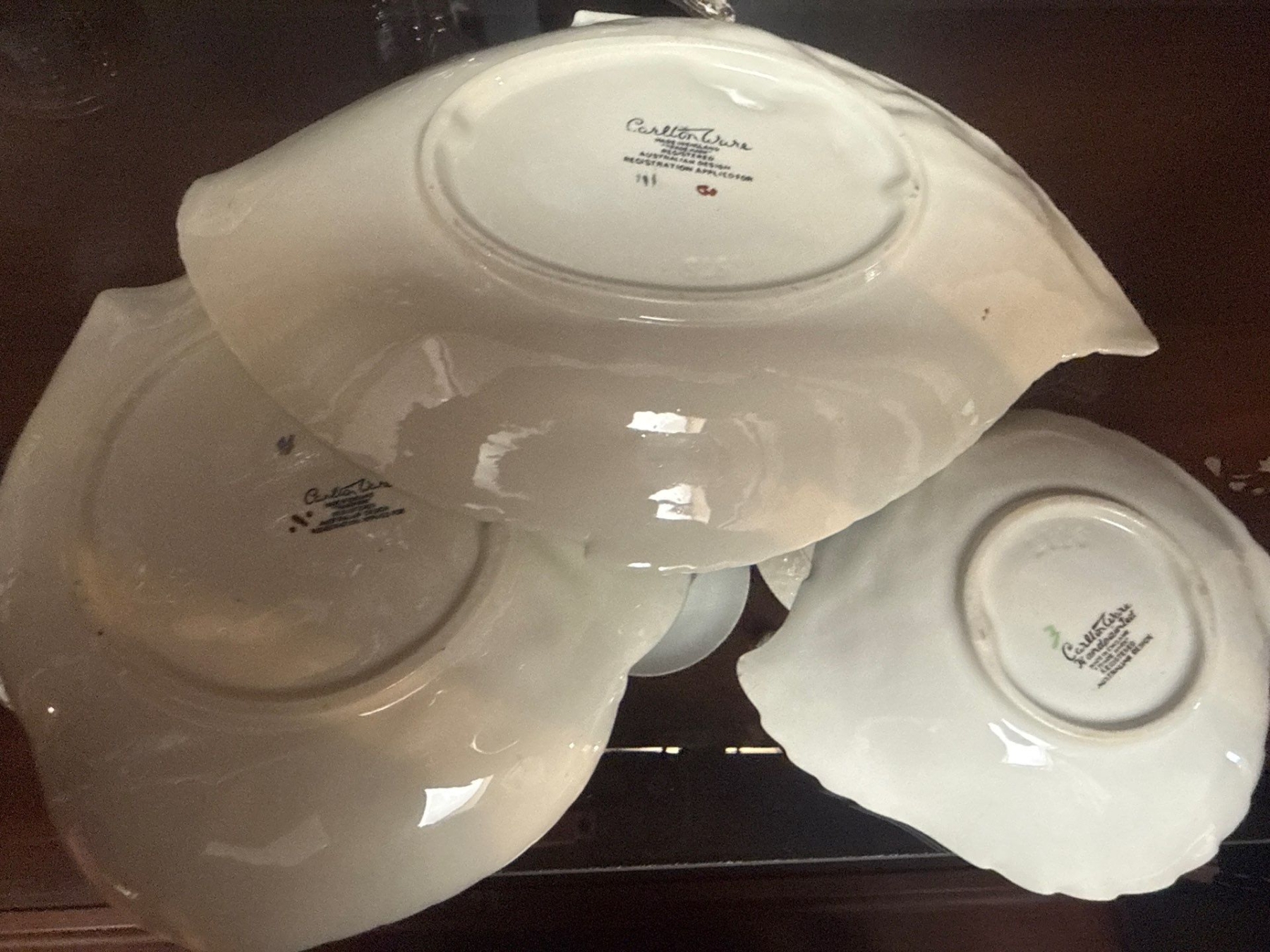 Lot 58 Vintage Carltonware Ceramic Serving Plates w/ Crystal Butterfly & Glass Bouquet