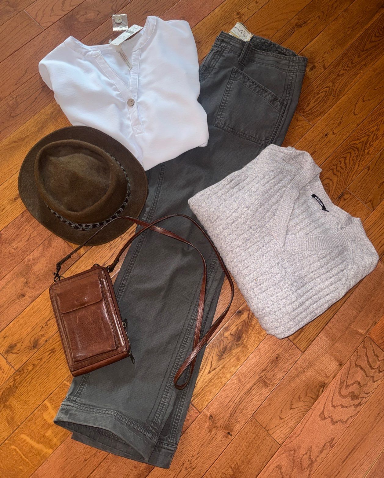 Lot 63 Ladies Casualware - Cargo Pants Ribbed Tunic New Button Down Tee Fur Fedora & more