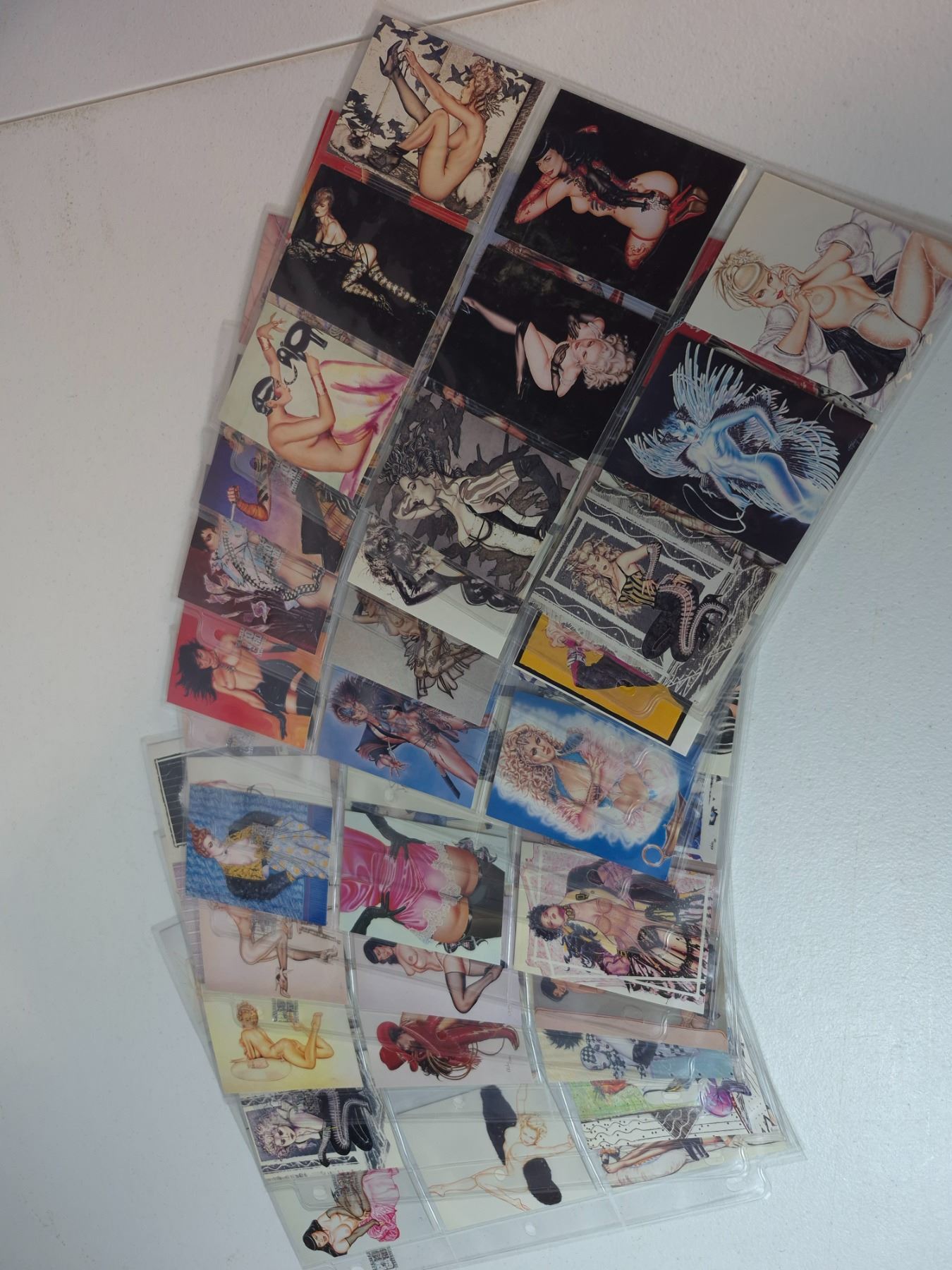 1992 Olivia pin-up trading cards partial set. Features various artistic pin-up illustrations. Includes multiple cards in sleeves; not confirmed complete.