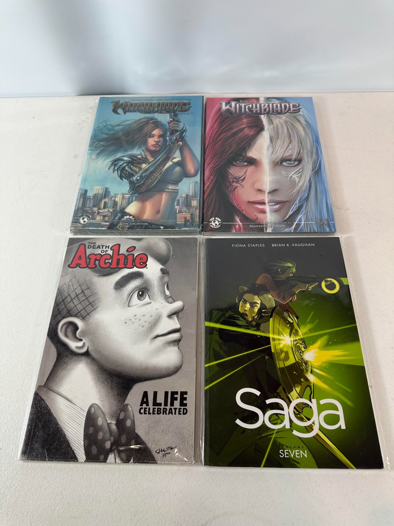 Lot 97 Graphic Novel Lot - Witchblade, Saga Vol. 7 & The Death of Archie (4 Books)