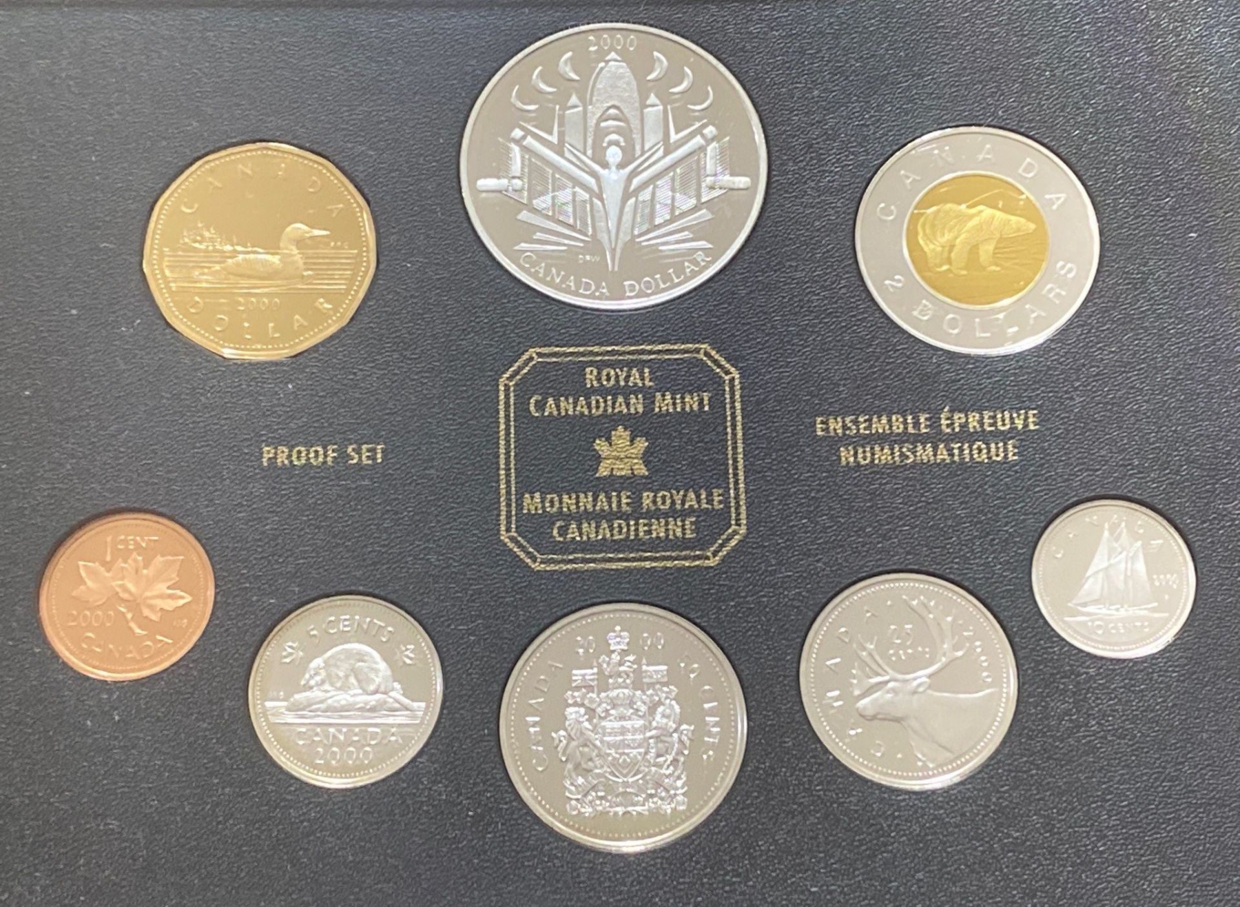 Lot 72 2000 Canadian Proof Set With Fine Silver Dollar 92.5% Silver 1.69 Troy Ounces