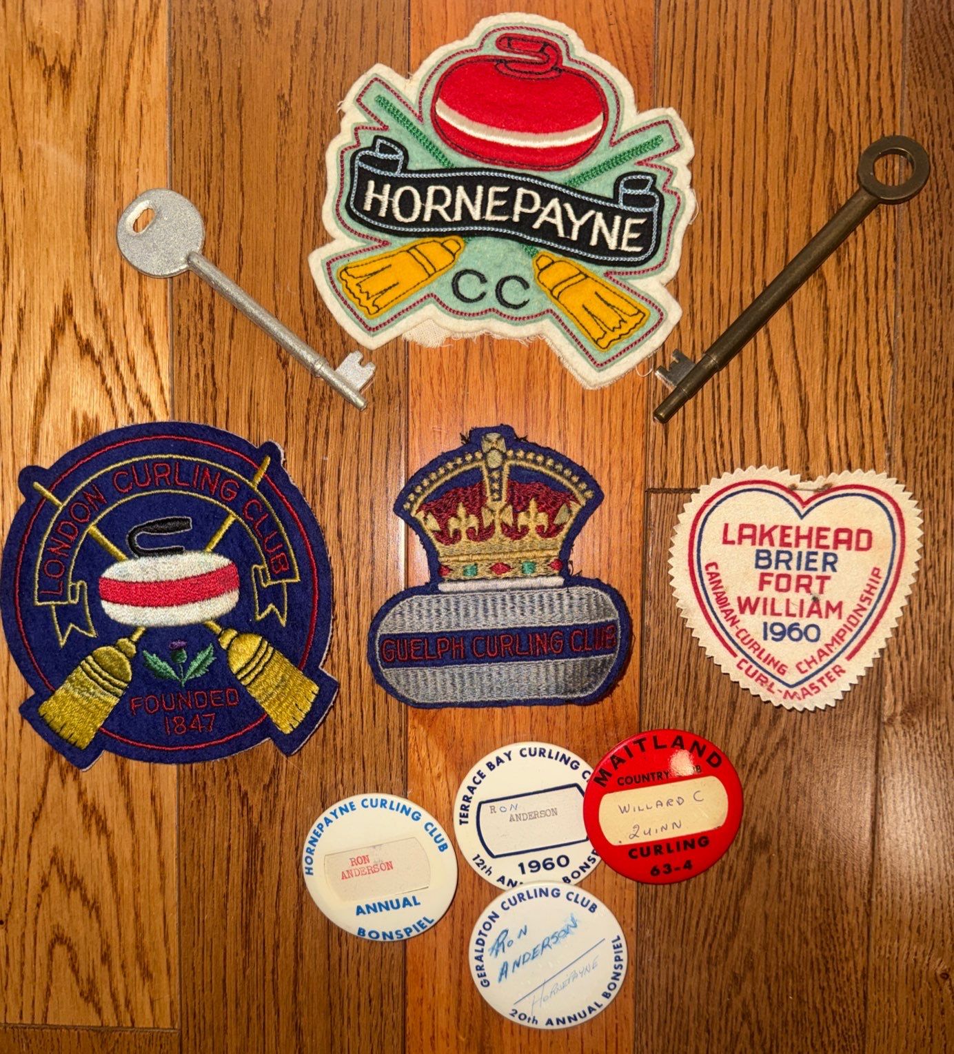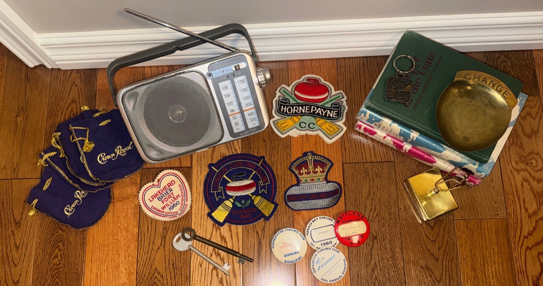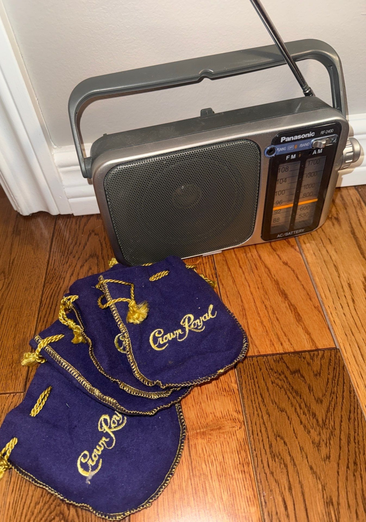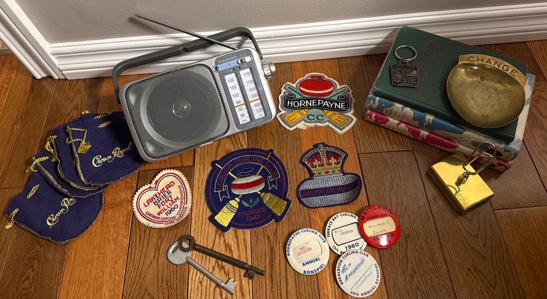 Lot 79 Panasonic Portible Handheld AM/FM Radio w/ Assorted Curling Related Buttons & Patches