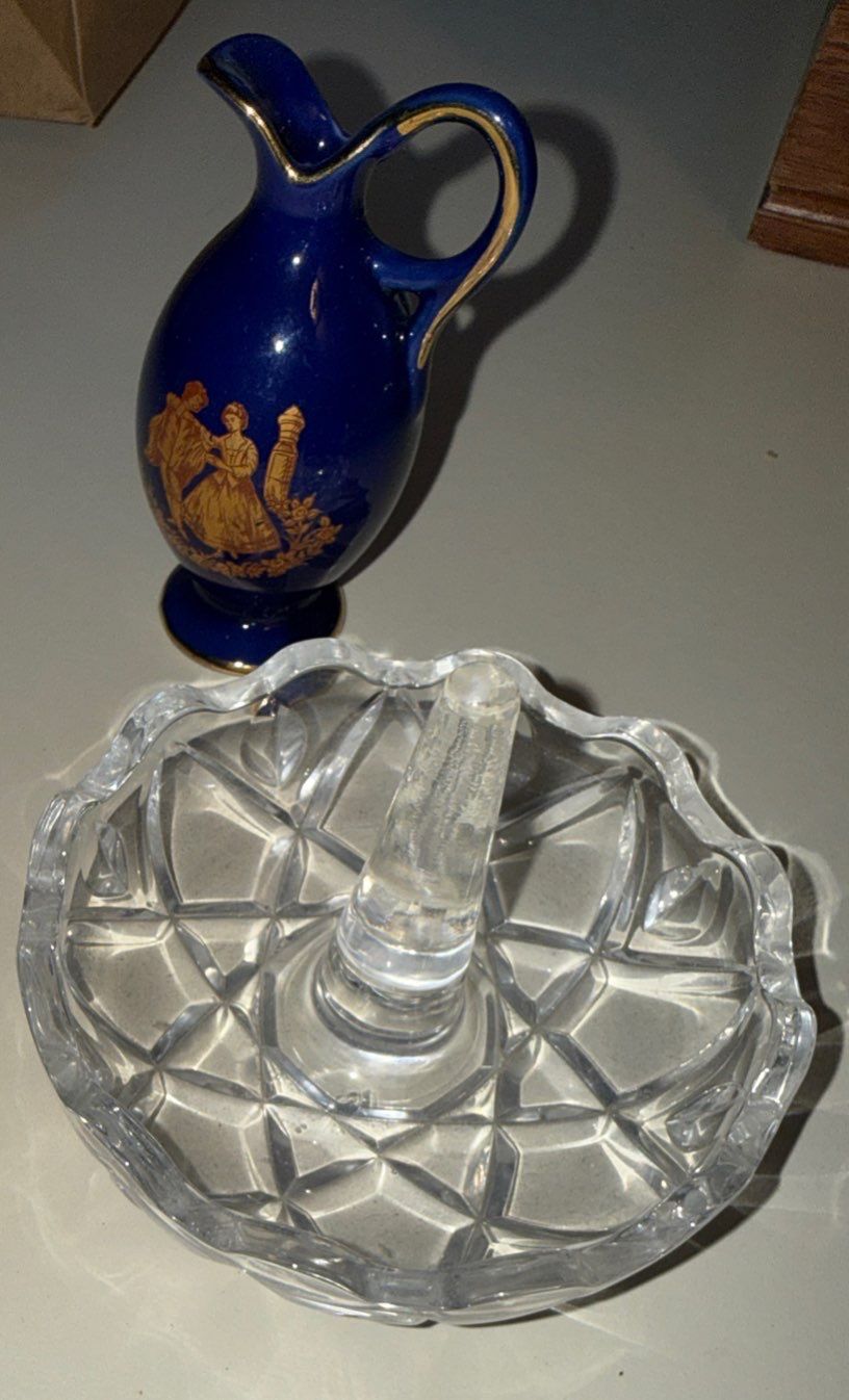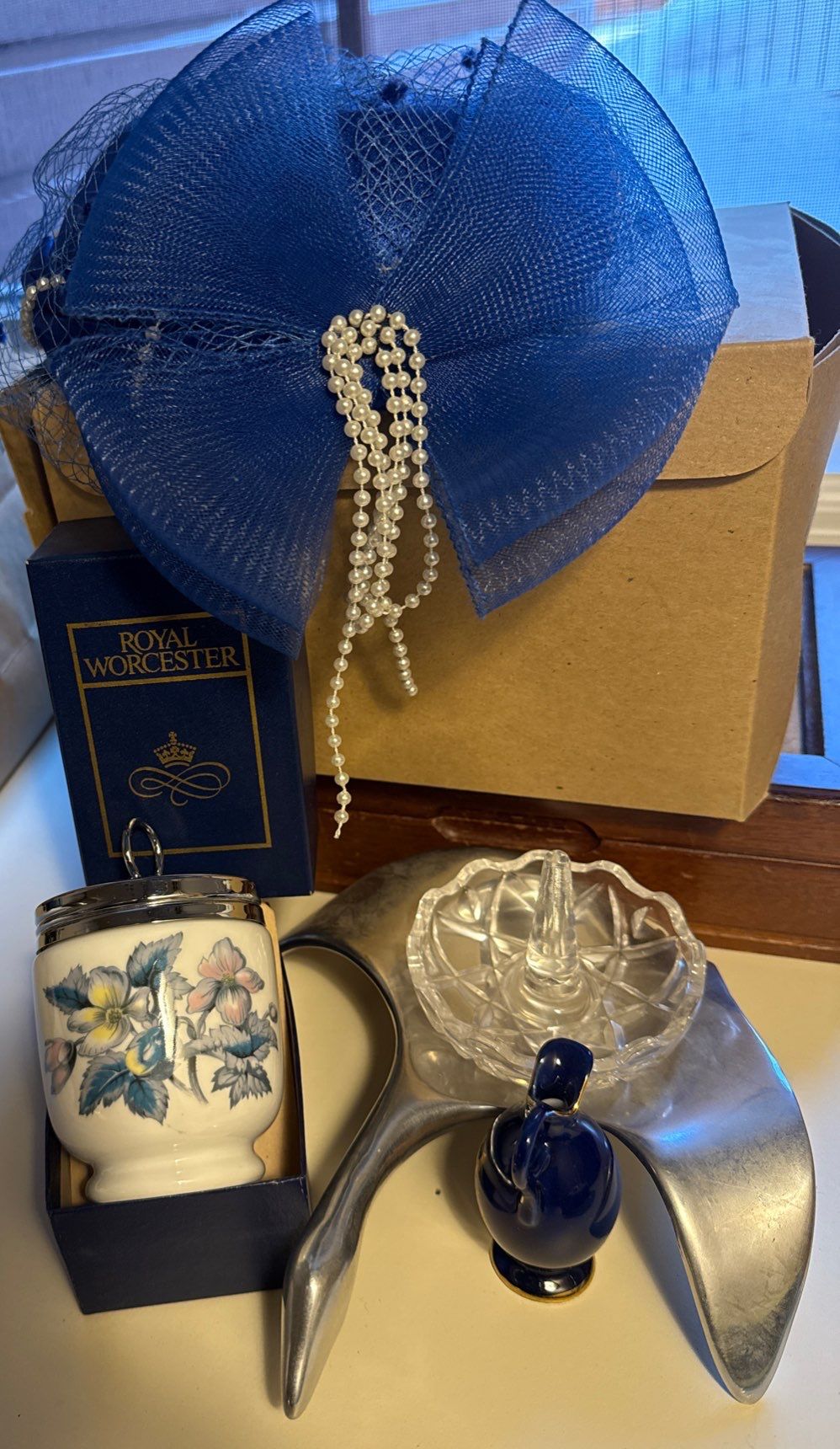 Lot 87 Vintage Hat w/ Blue Toole & Bead Detail w/ Hoselton Bird Figure Royal Worchestor Dish & More