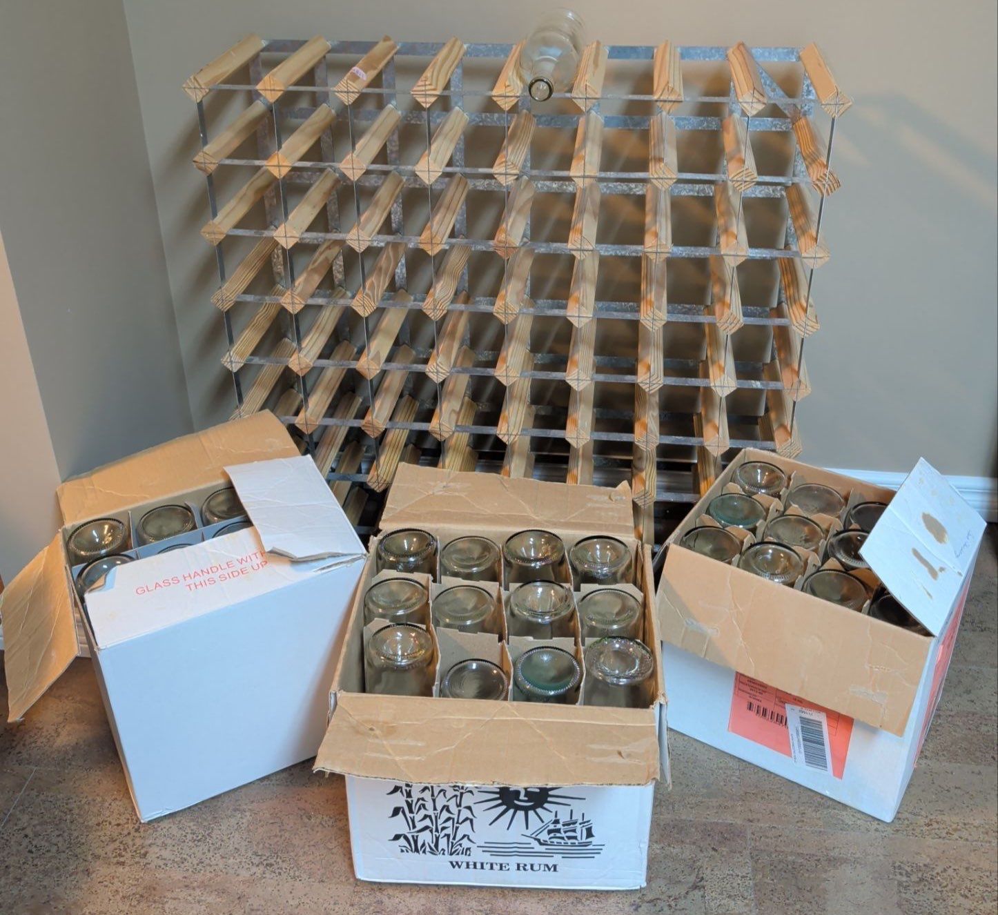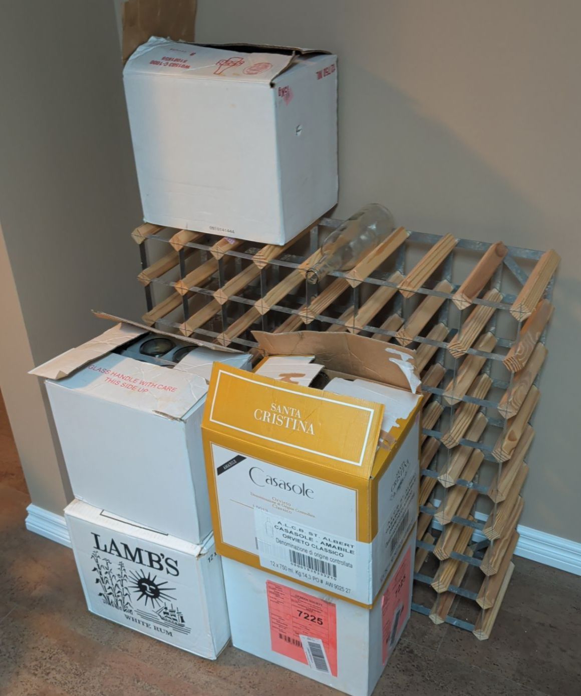 Lot 105 Vino Essentials - Wine Rack w/ Boxes & Boxes Of New Wine Bottles
