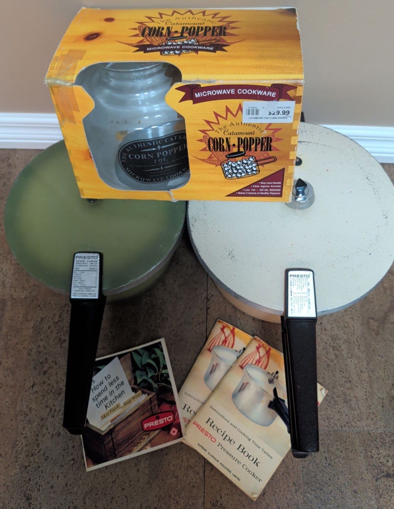 Lot 107 Kitchen Classics - Preston Pressure Cookers New Popcorn Popper Ice Tea Decantor Crystal Jug & more