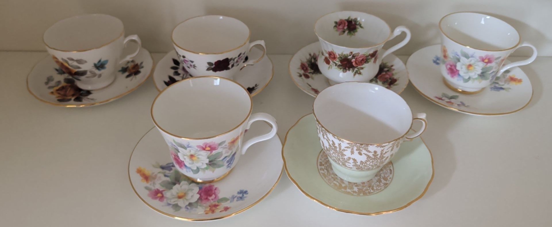 Lot 109 6 Mismatched Antique Teacups & Saucers - Royal Standard Royal Vale & More