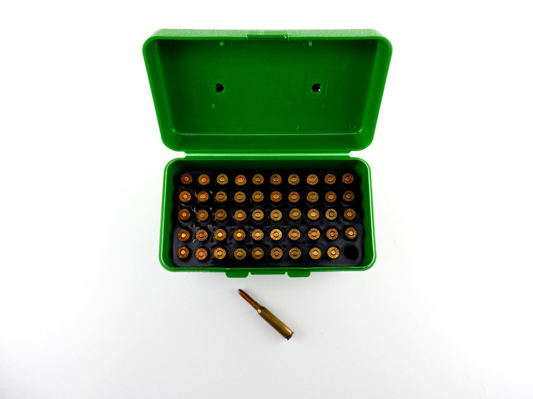 LOT INCLUDES; APPROX. (50) RNDS, (1) CASE-GARD H-50 PLASTIC AMMO BOX.