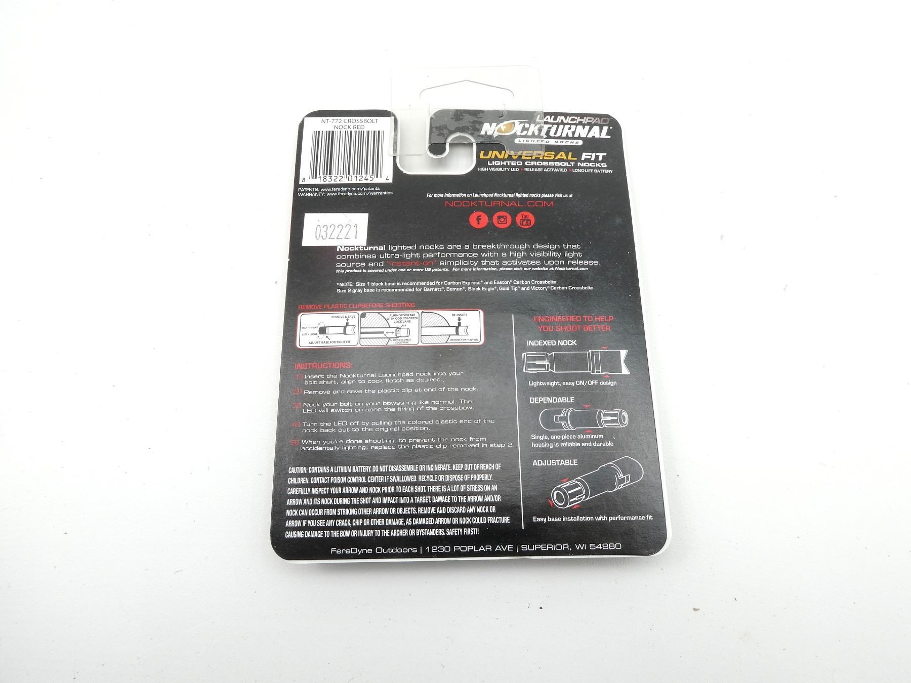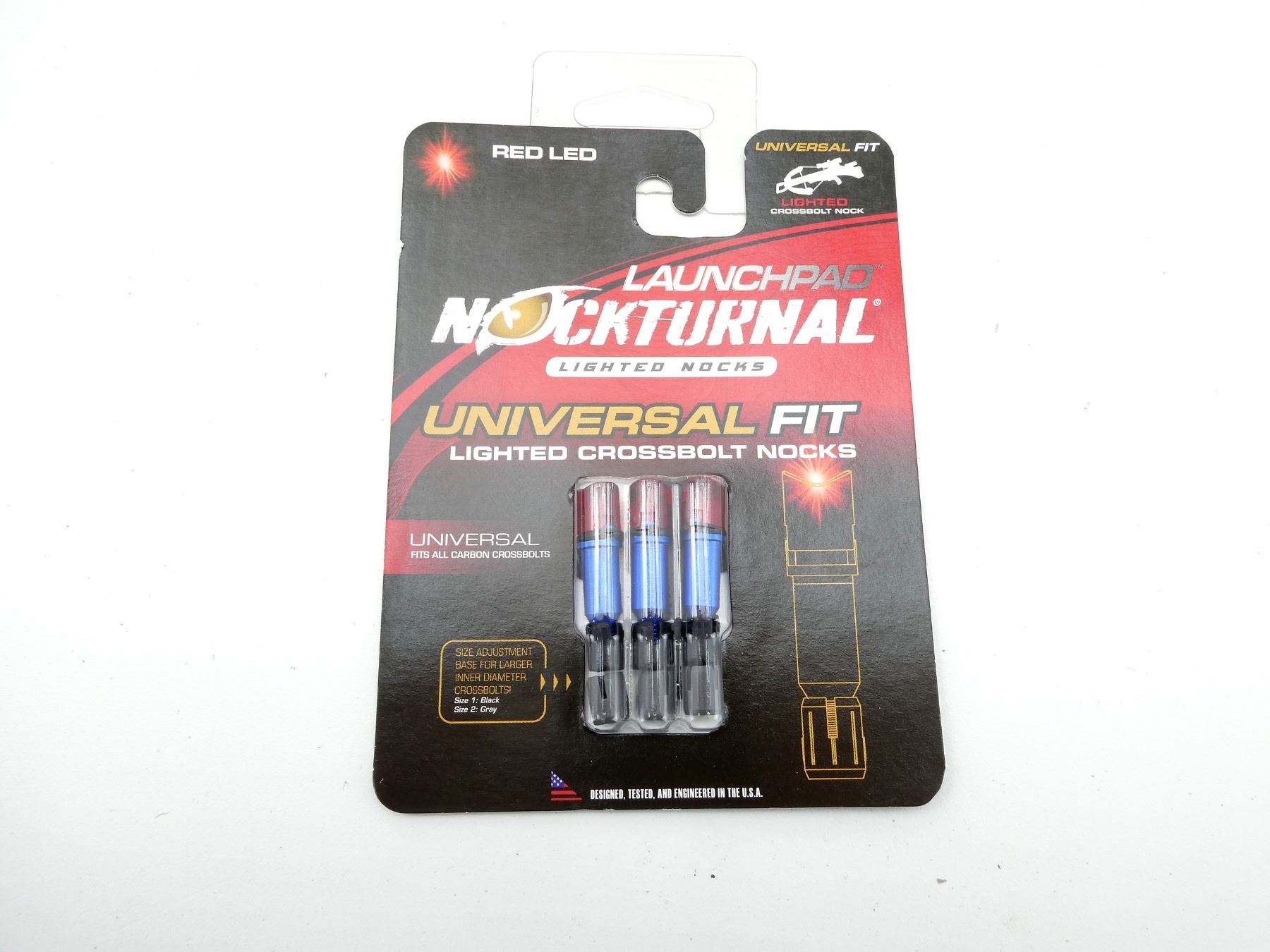 LOT INCLUDES; (3) LAUNCHPAD NOCKTURNAL UNIVERSAL FIT LIGHTED CROSSBOLT NOCKS, FITS ALL CARBON CROSSBOLTS, NEW OLD STOCK, IN ORIGINAL SEALED PACKAGING, SEE PHOTOS.