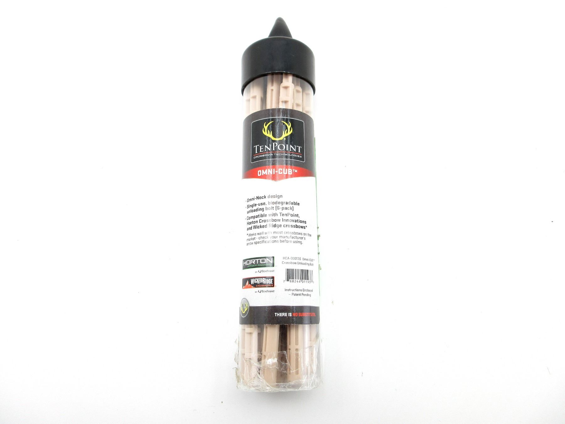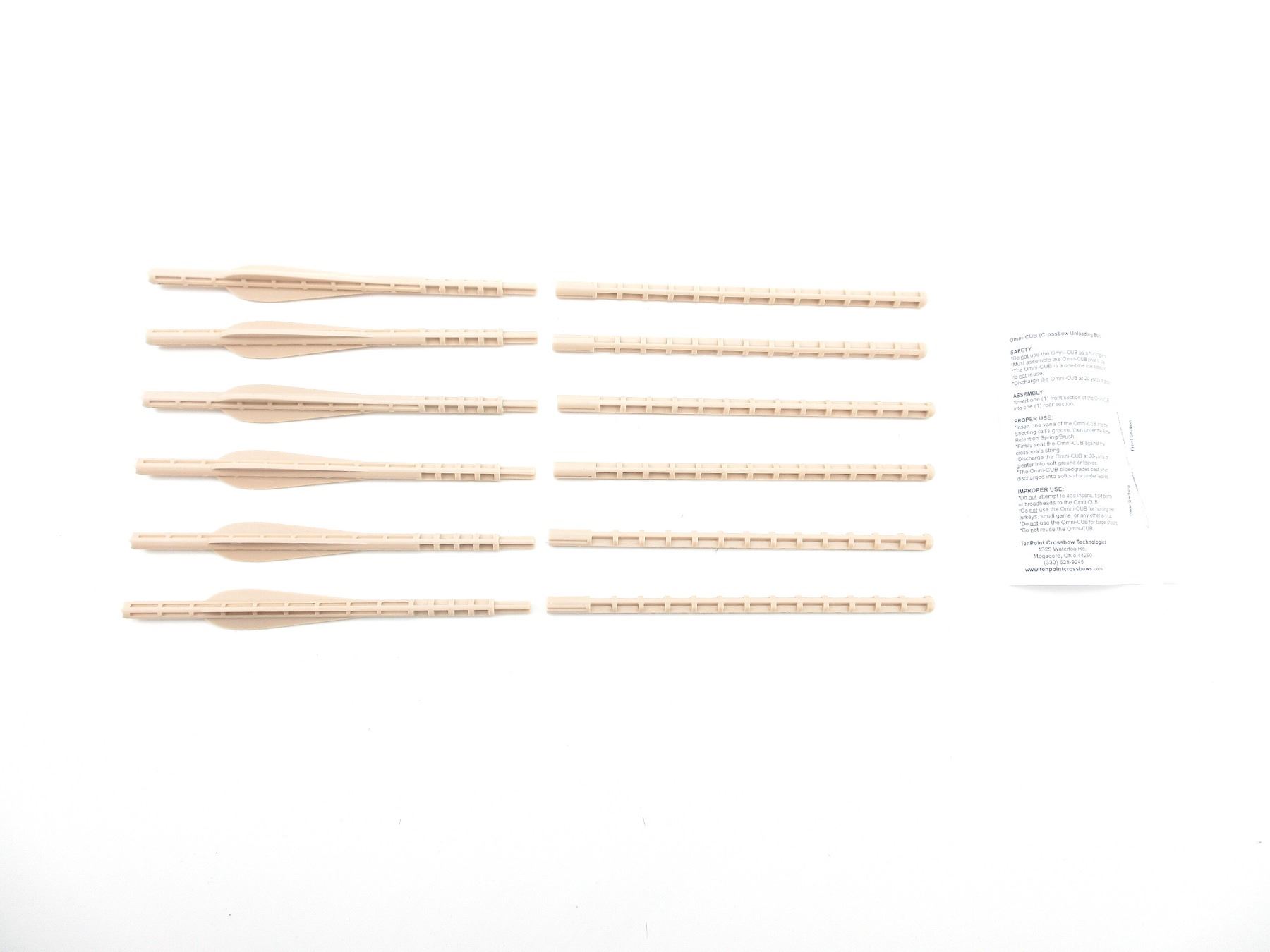 LOT INCLUDES; (12) UNLOADING BOLTS, OMNI-NOCK DESIGN, SINGLE USE, BIODEGRADABLE, COMPATIBLE WITH TEN POINT, HORTON CROSSBOW INNOVATIONS & WICKED RIDGE CROSSBOW, IS NOT APPROVED FOR USE ON THE NITROX, SEE PHOTOS.