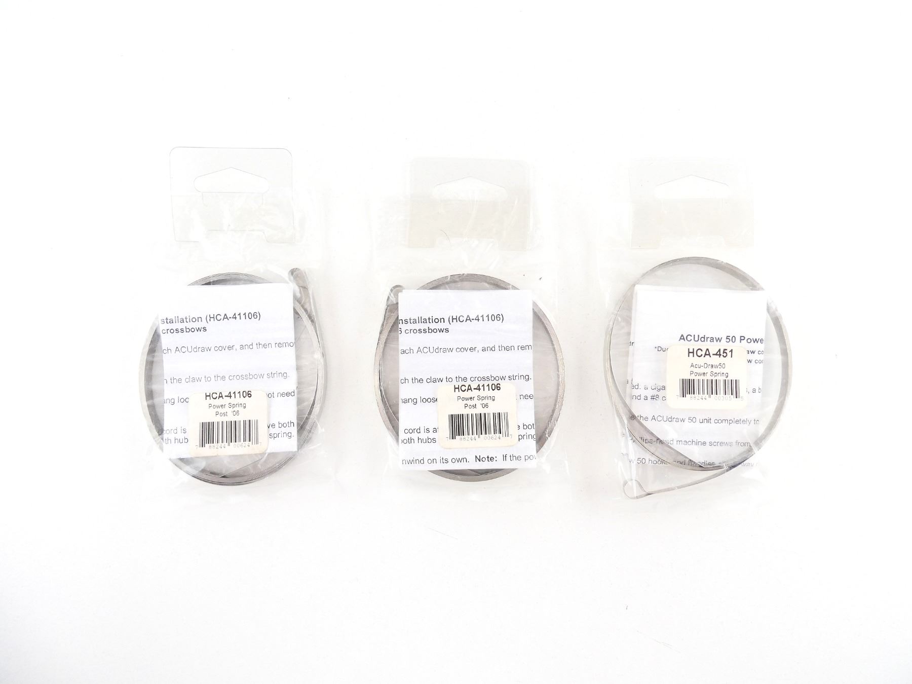 LOT INCLUDES; (2) HCA-41106 POWER SPRING POST '06, (1) HCA-451 ACU-DRAW50 POWER SPRING, UNOPENED, SEE PHOTOS.