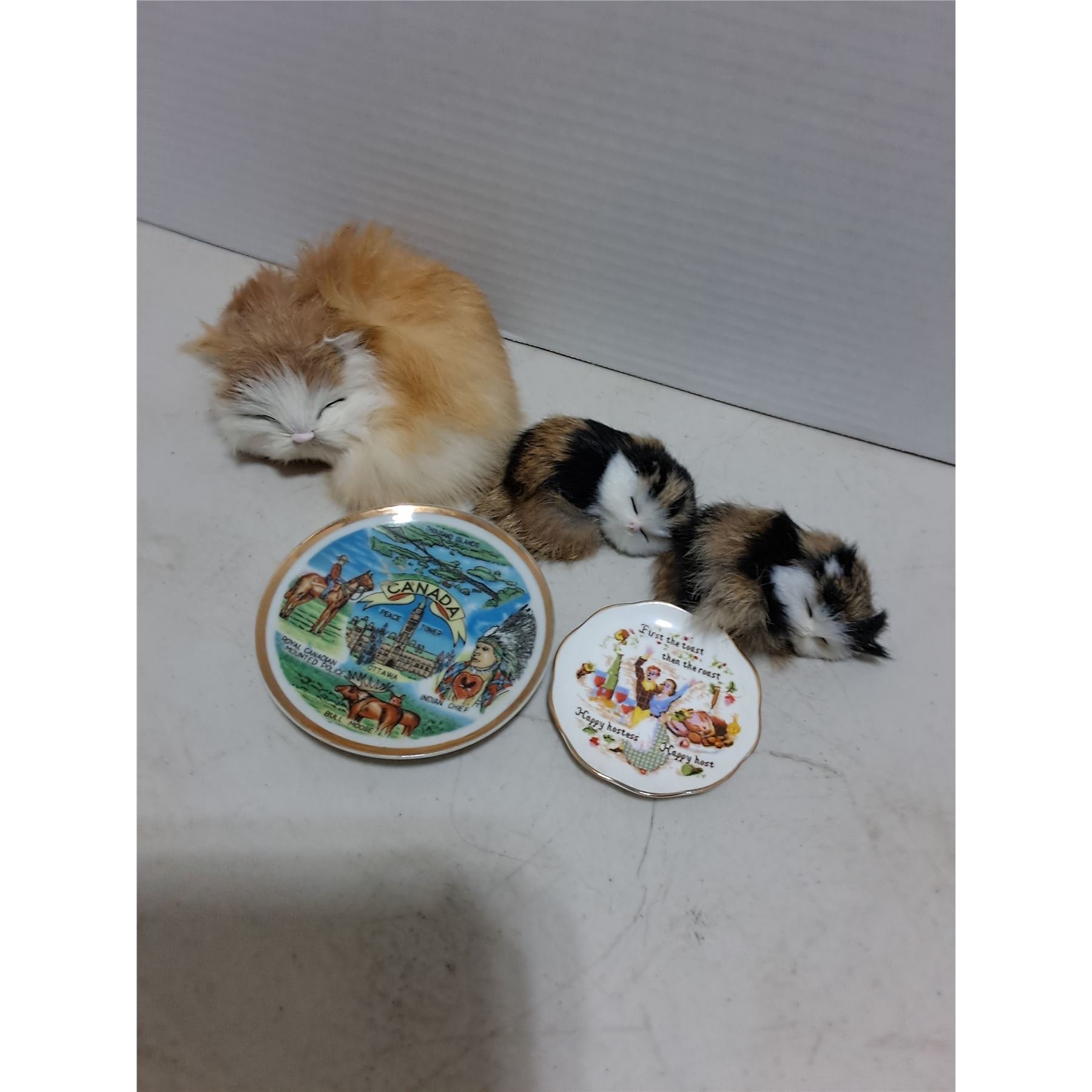 Lot 76 Trinket Dishes, Furry Cat Ornaments