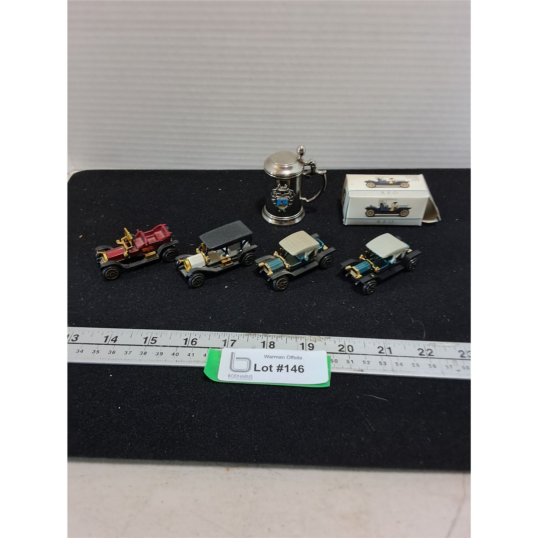 Lot 146 (4) REO Mini Replica Antique Vehicles, Burg Cochem Souvenir Beer Stein