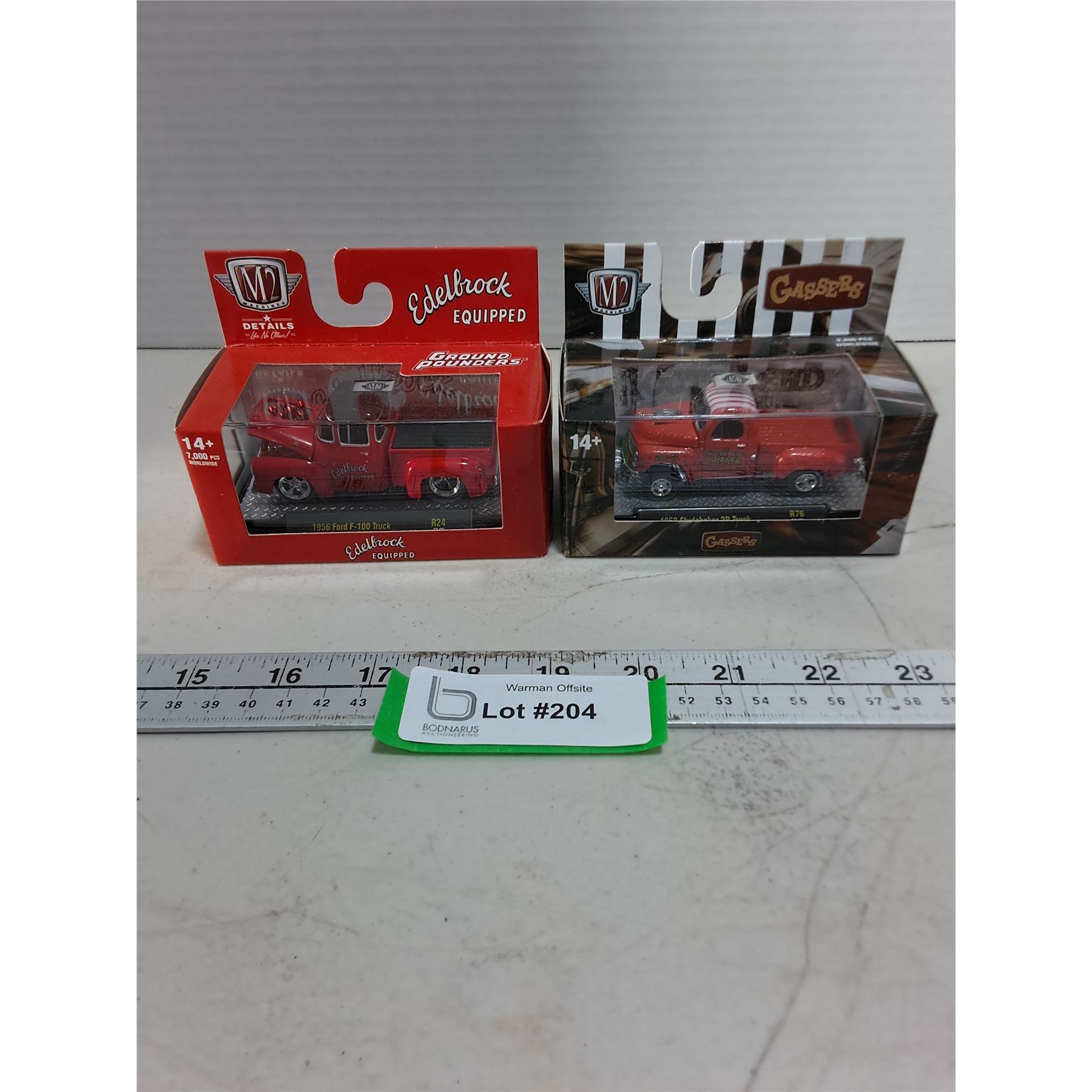 Lot 204 (2) NIB Mini Replica Die-Cast Vehicles (1956 Ford F150 & 1950 Studebaker 2R Truck)