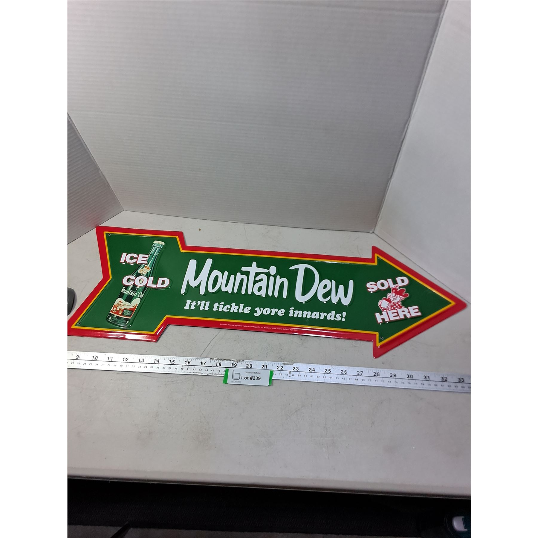 Lot 239 'Vintage Look' Metal Mountain Dew Sign - 27" Long - PICK UP
