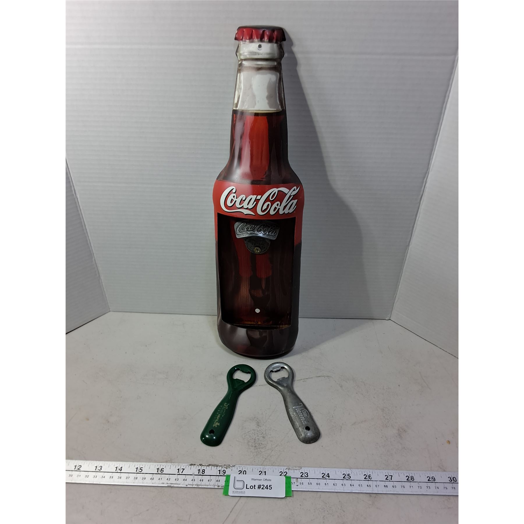 Lot 245 (3) Bottle Openers Including Coca-Cola 18" Metal Wall Mount