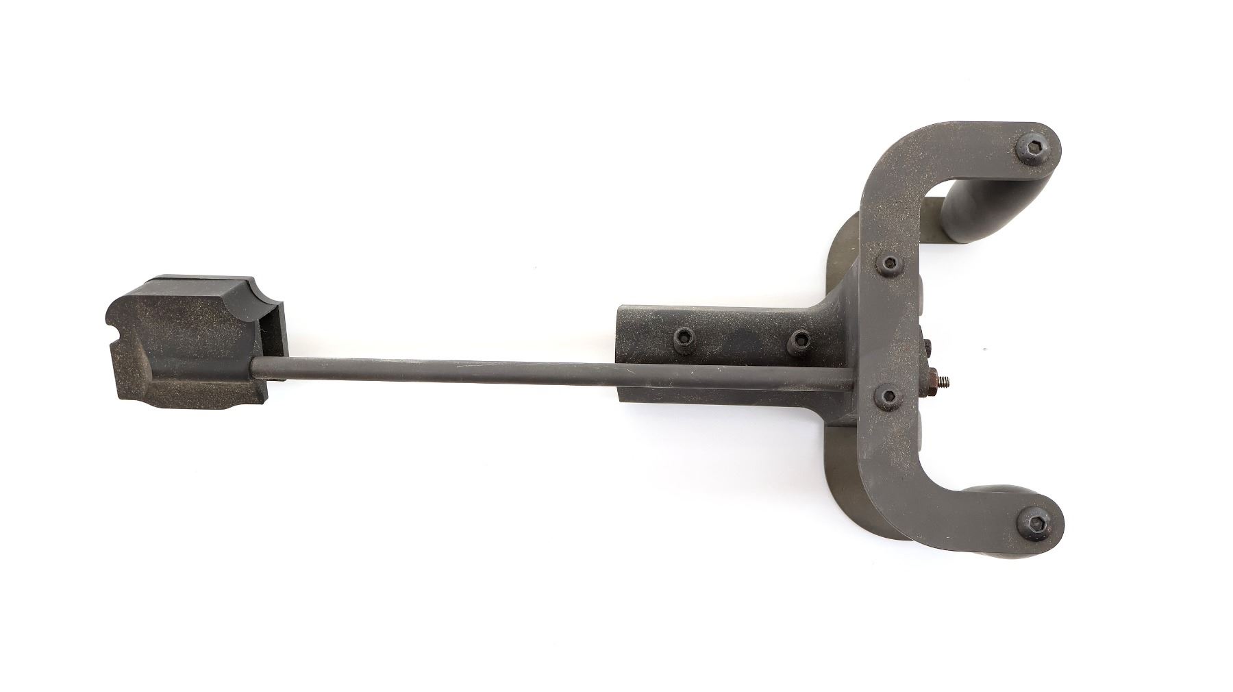(1) SPADE GRIP ASSEMBLY, APPEARS COMPLETE, STEEL & ALUMINIUM CONSTRUCTION, UNMARKED, OVERALL LENGTH APPROX. 13", WITH INFORMATION. MAY REQUIRE FITTING. SEE PHOTOS.