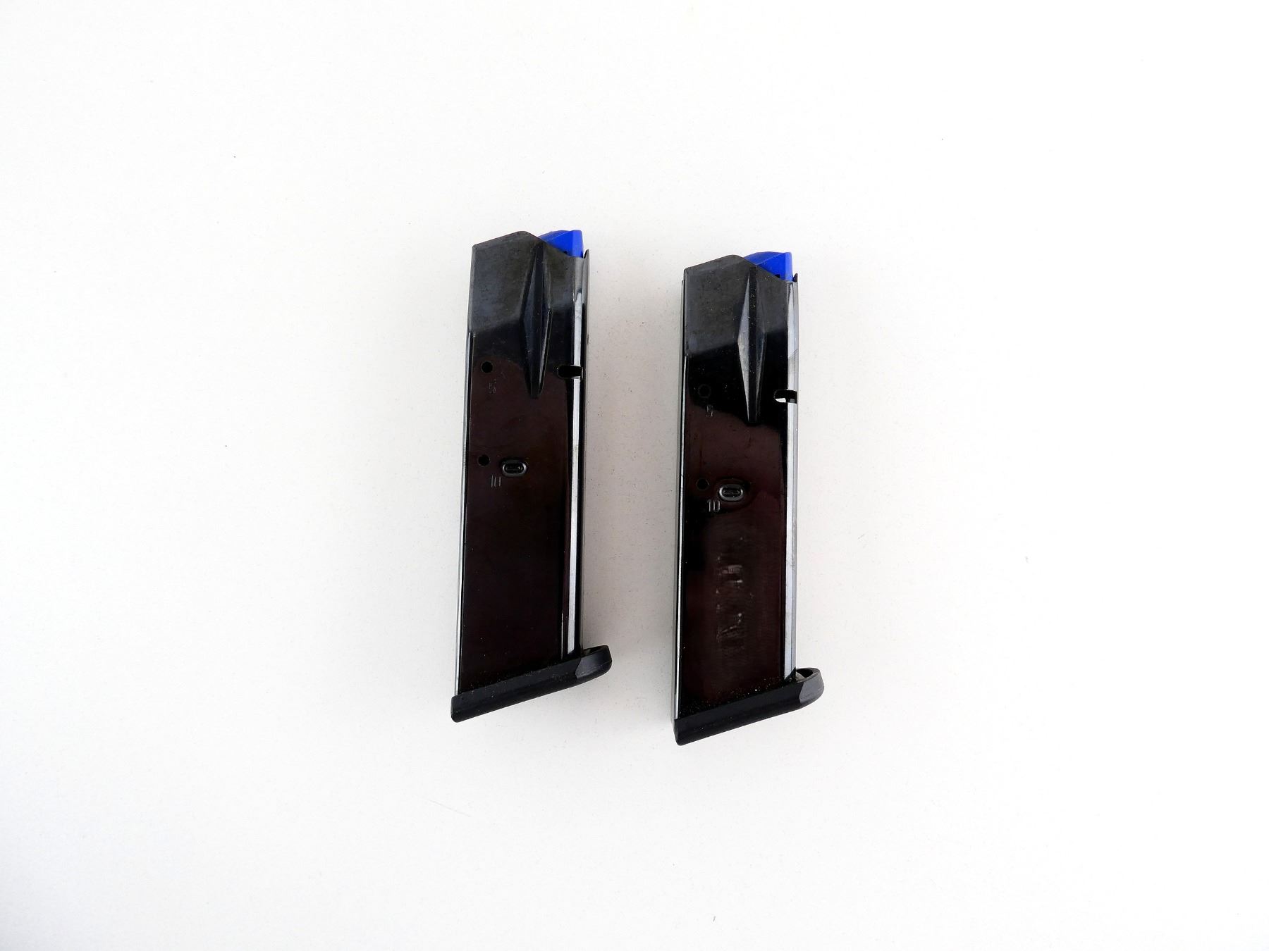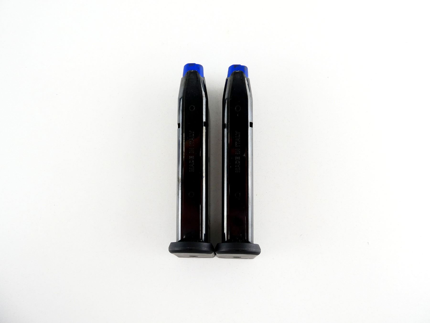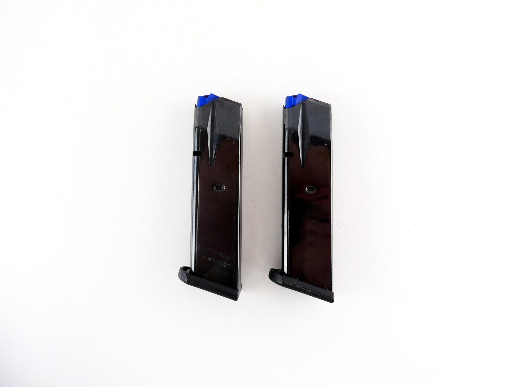 LOT INCLUDES; (2) 9MM LUGER MAGS, 10 RNDS, BLUED STEEL CONSTRUCTION WITH BLUE POLYMER FOLLOWER, MARKED: "CZ-75-9MM", "MEC-GAR", ETC. SEE PHOTOS. PAL REQUIRED.